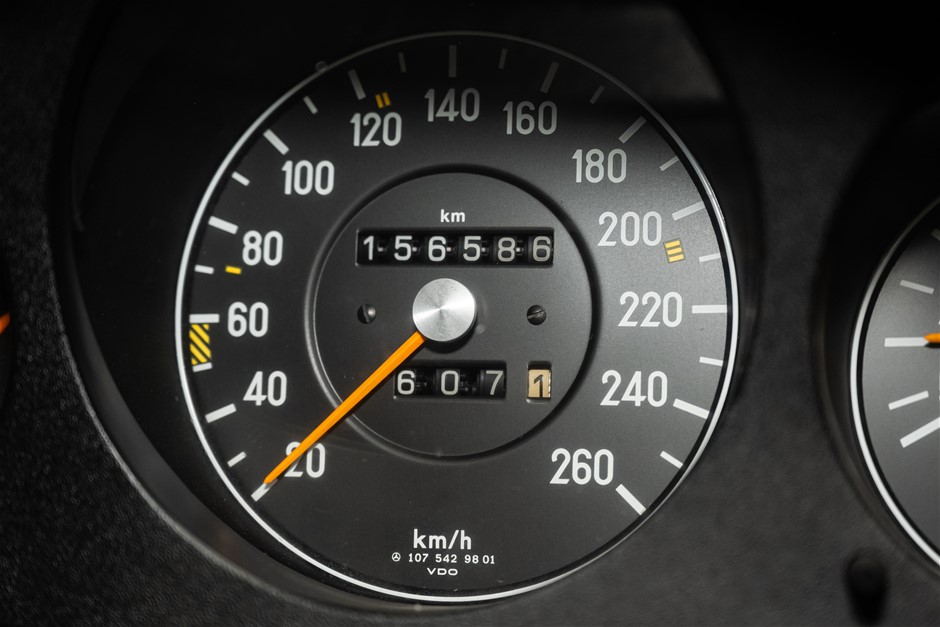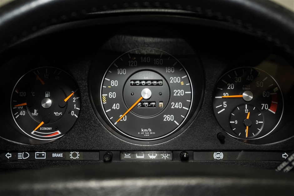 The 560 SL convertible was the latest in Mercedes-Benz`s long and much loved line of luxury sports cars. Launched in 1983 it could trace its lineage back to the 230 SL of 1963. The 560 SL was powered by a 5.5 litre, overhead camshaft V8 engine producing 227bhp, an output good enough for a top speed of 220kmh with 100kmh reachable in around eight seconds. There were improvements to the running gear in the form of anti-dive, anti-squat rear suspension, a limited slip differential and revised steering geometry. The 560 SL has a high level of standard equipment, including leather upholstery, anti-lock braking, an anti-theft alarm system, stereo radio/cassette, leather trimmed steering wheel, gear lever and an improved climate control system.