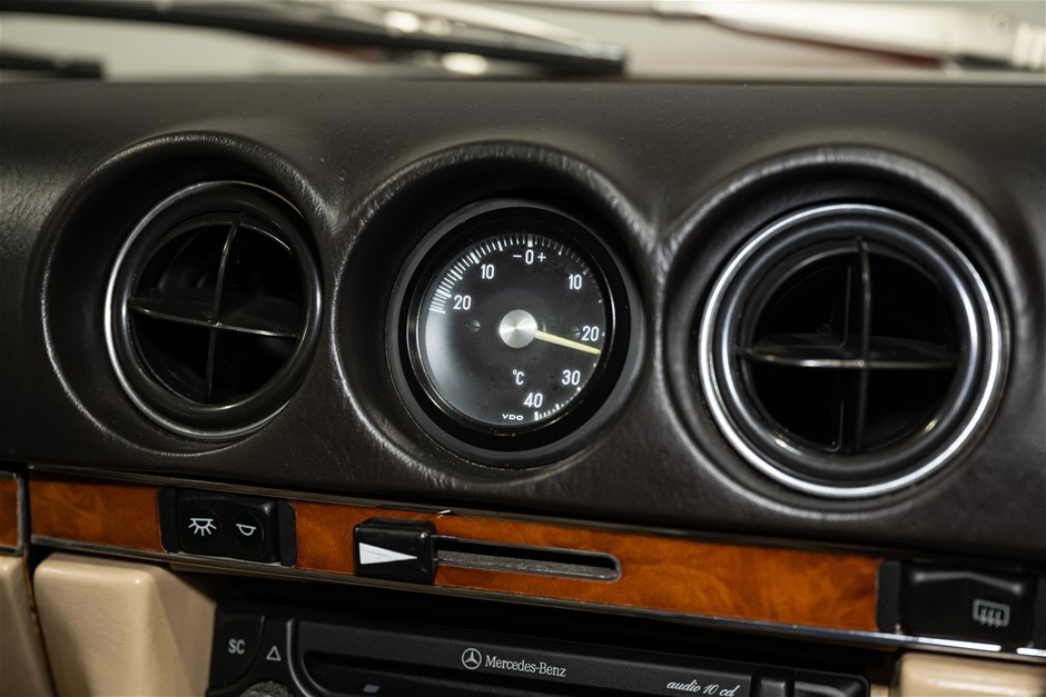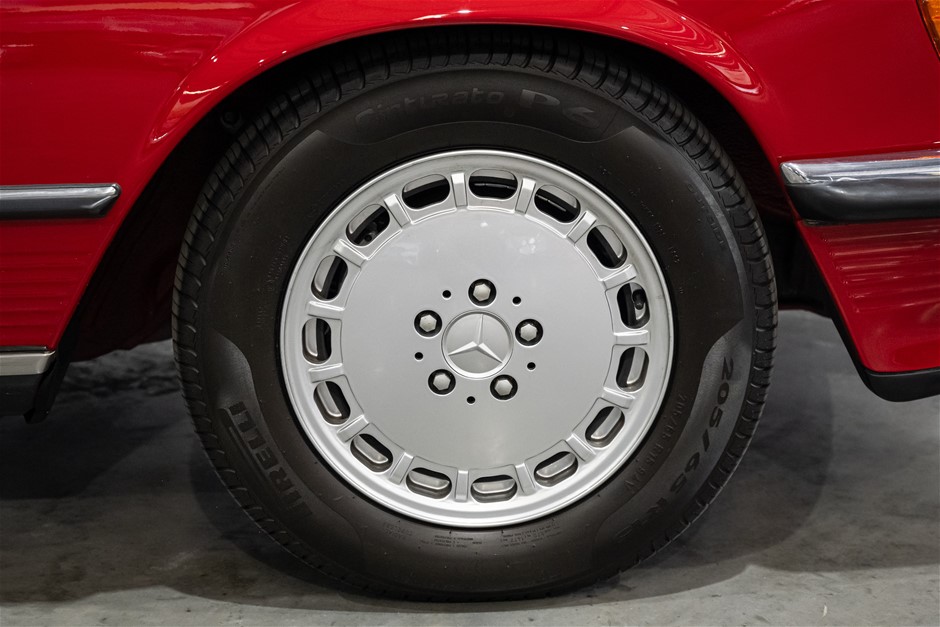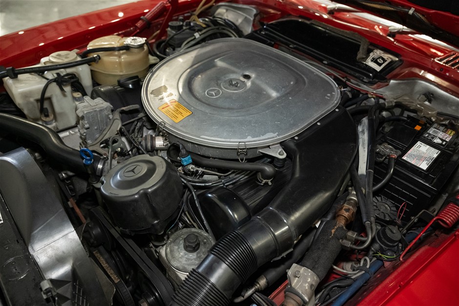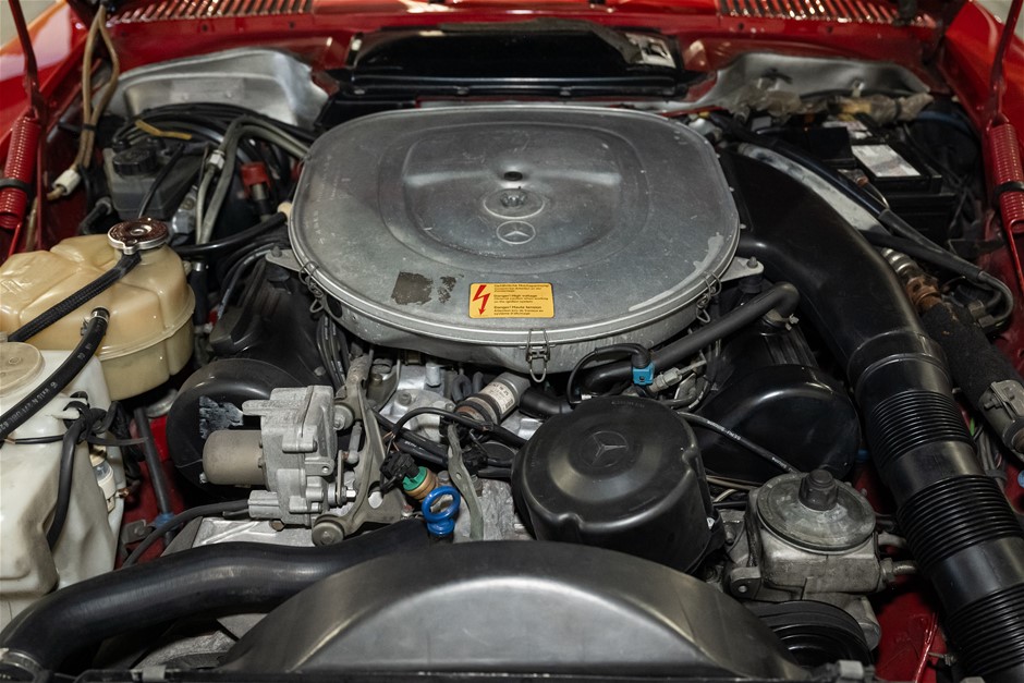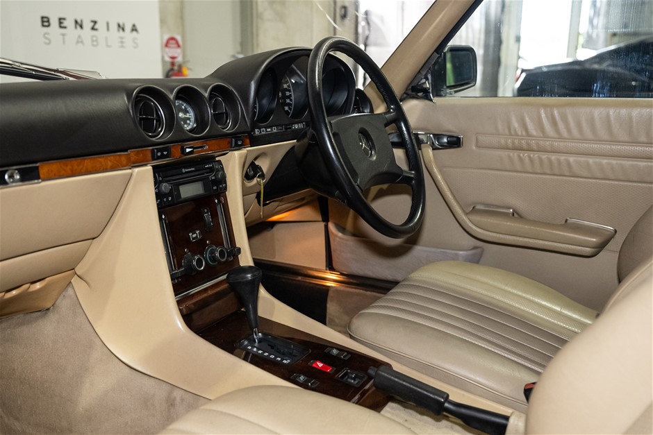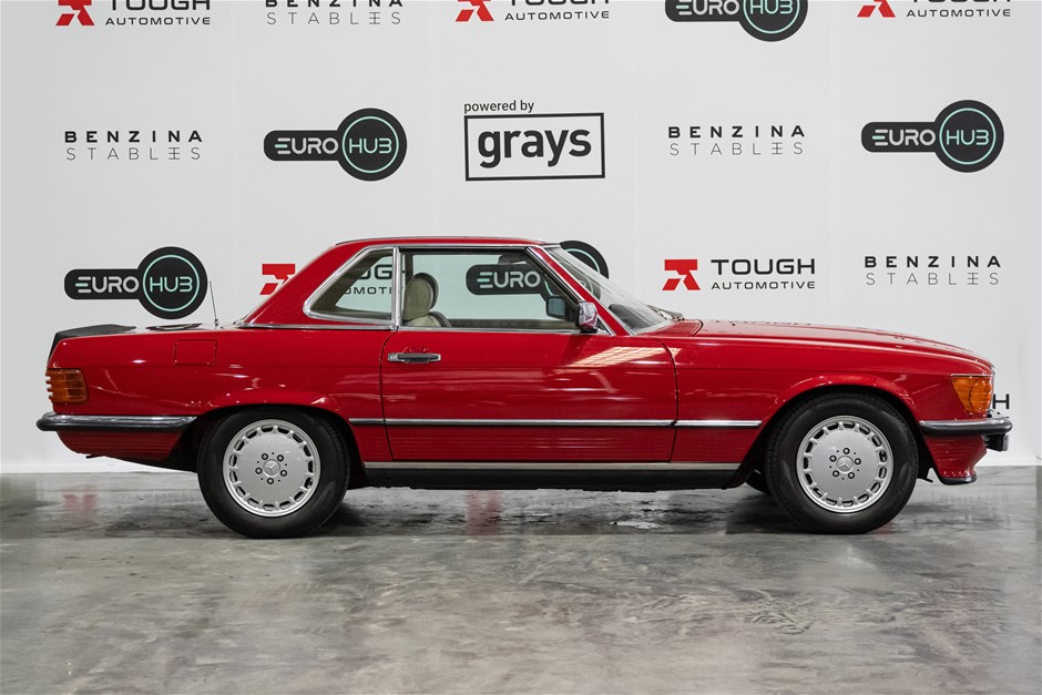 This flagship Mercedes-Benz R107 is presented in red with matching hardtop and contrasting beige leather trim. It is a credit to the owners of this classic in the way it has been maintained and cared for.