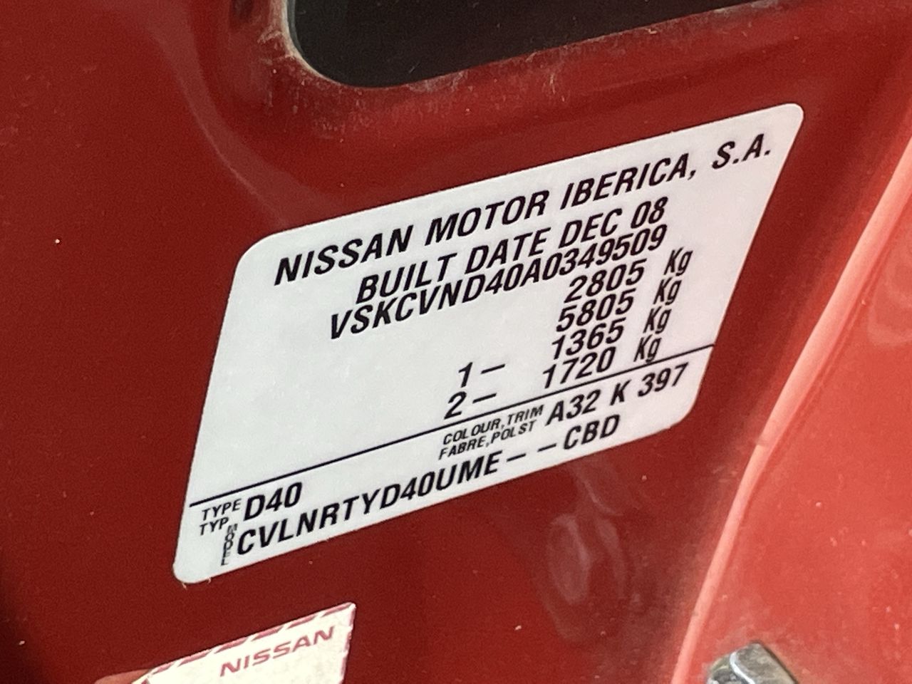 (SN:VSKCVND40A0349509) (120637-74)