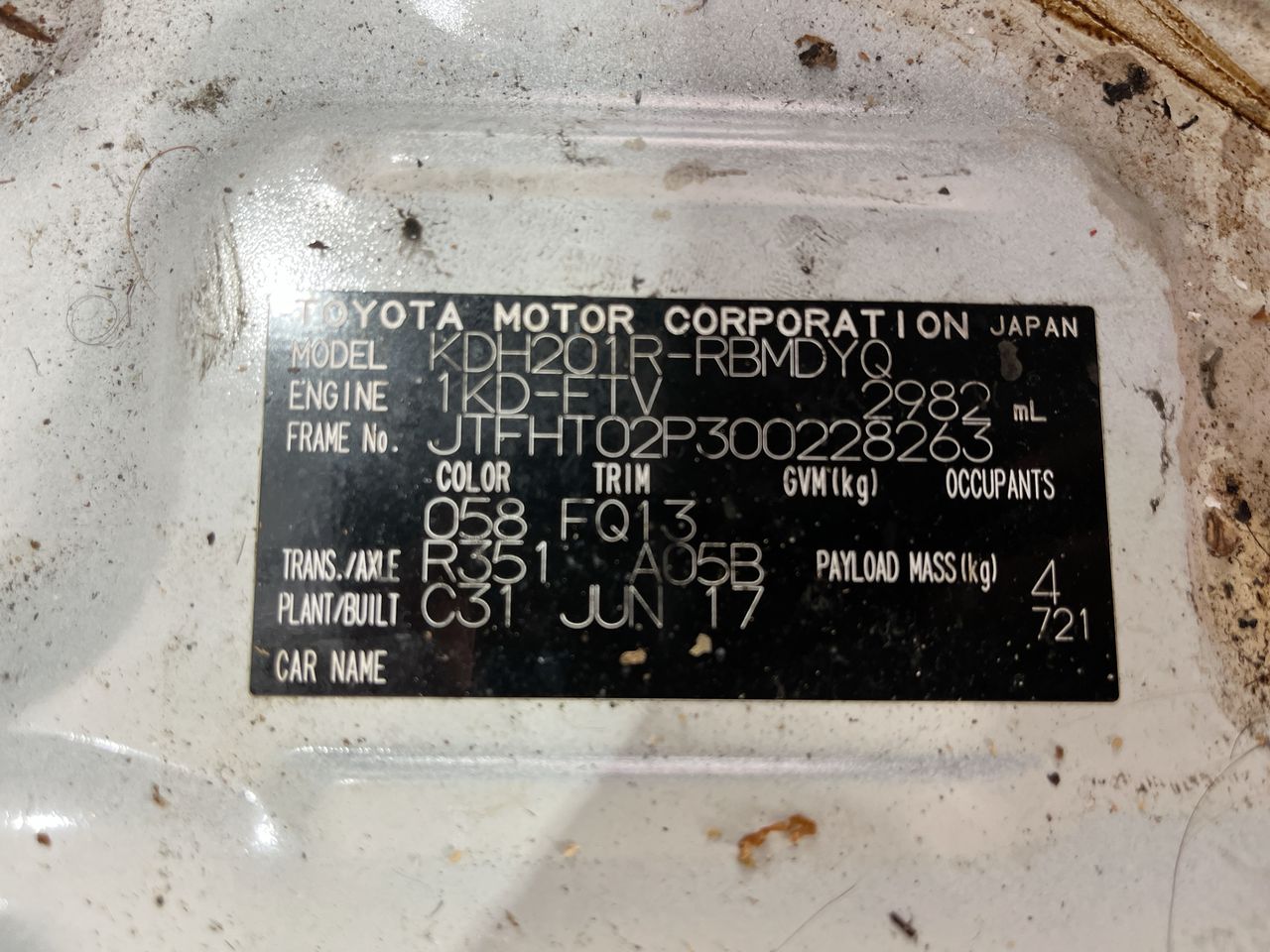2017 Toyota HiAce LWB KDH201R Turbo Diesel Manual Van