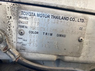 • Engine No. 2TR796217