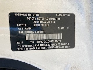 2015 Toyota Hilux 4x2 Workmate Ute