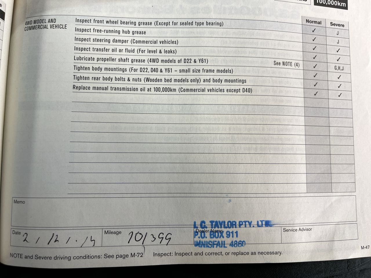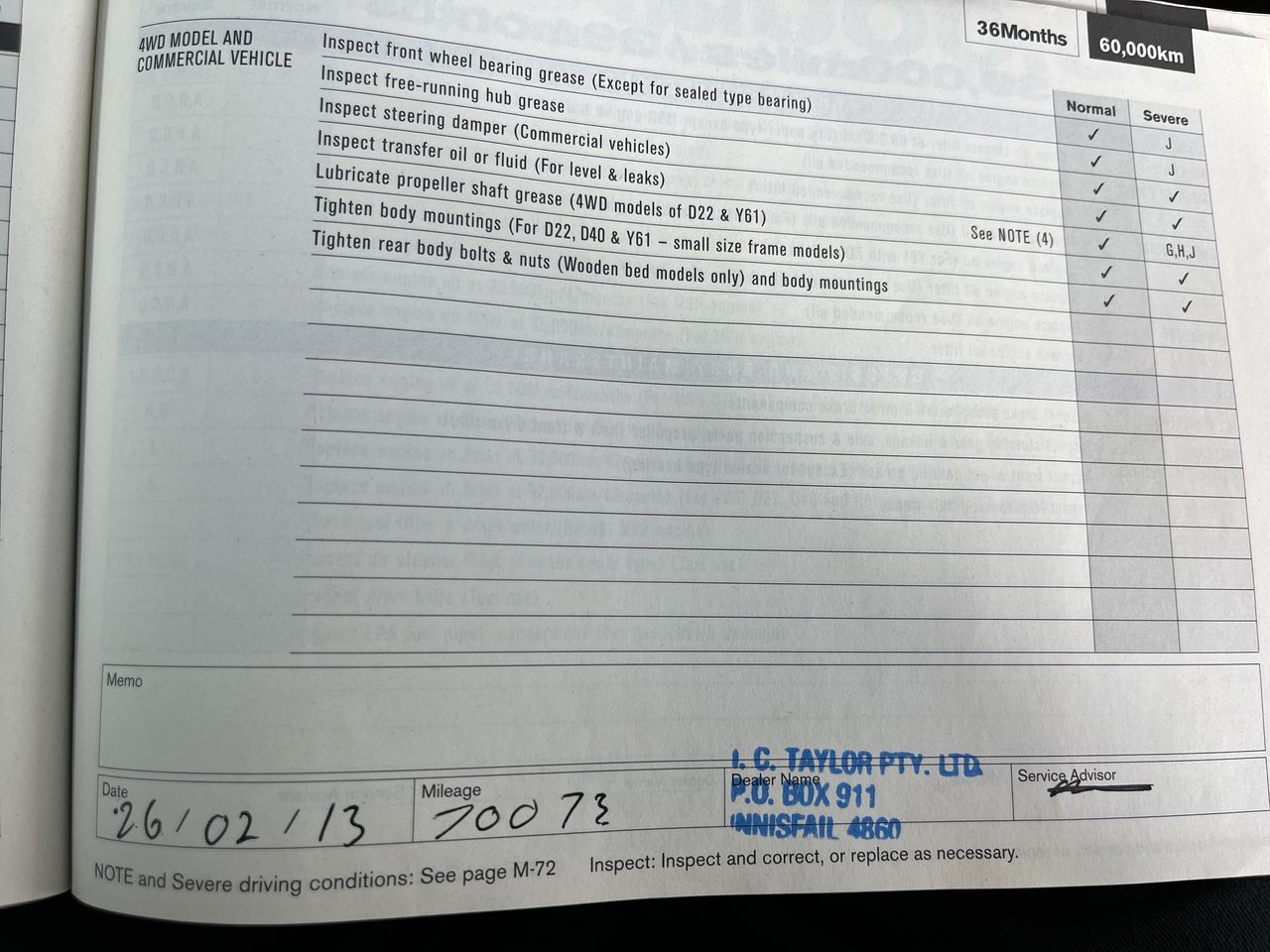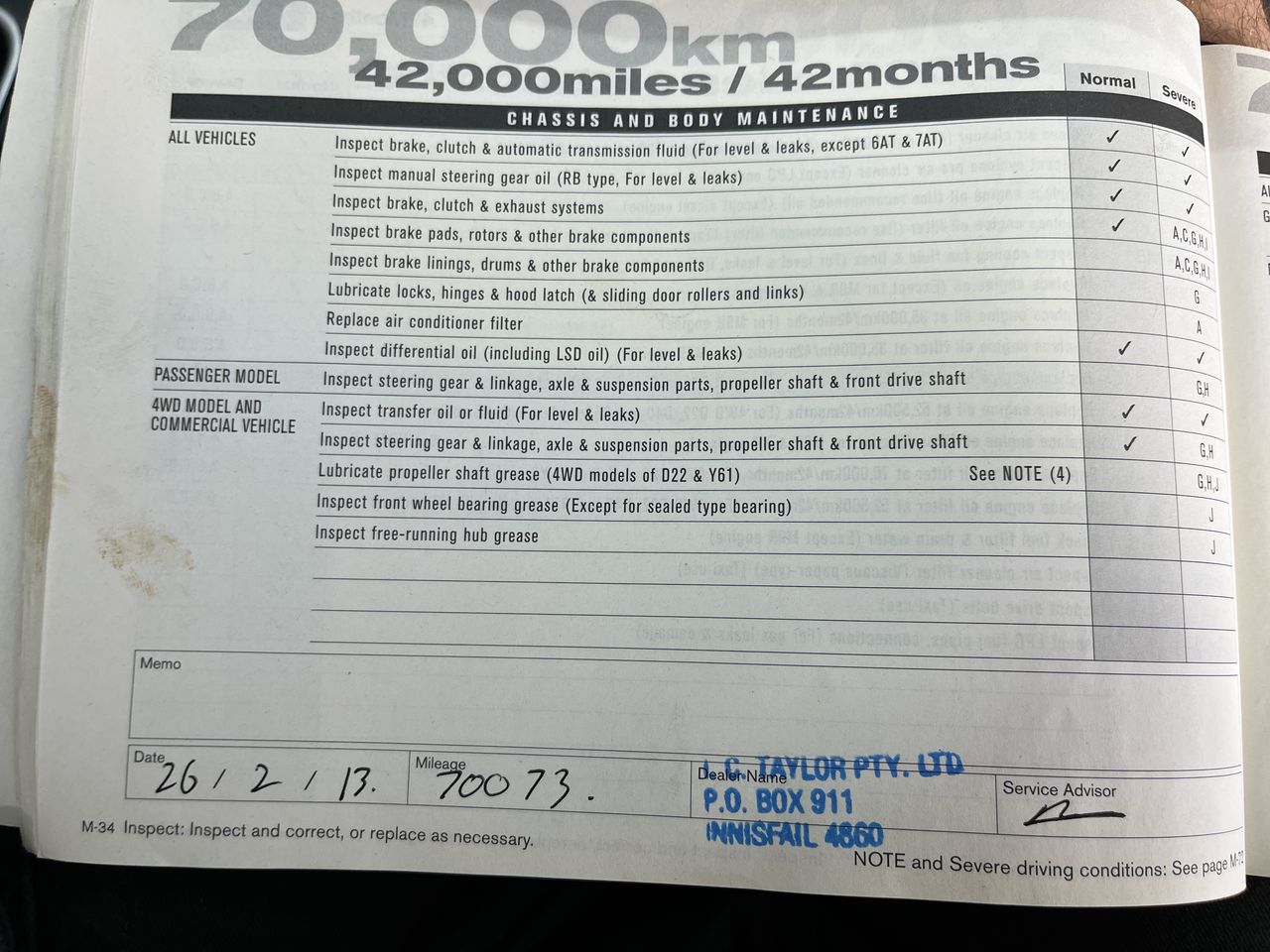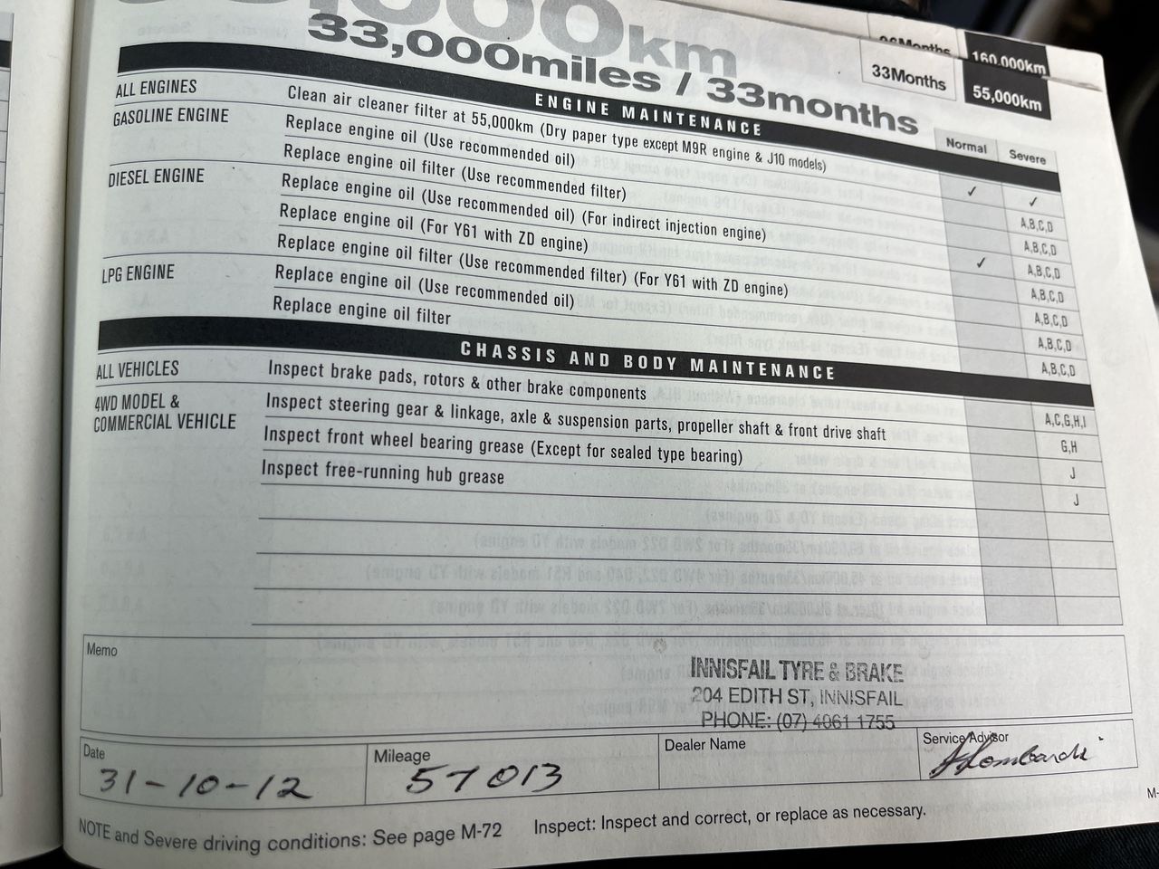 • Dents or marks on body consistent with age and kilometres.