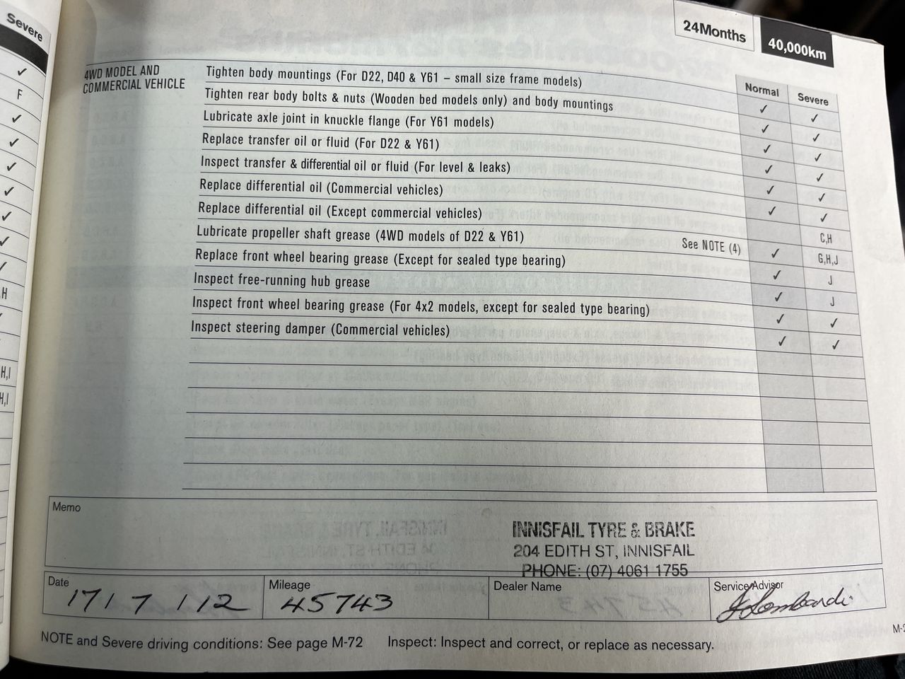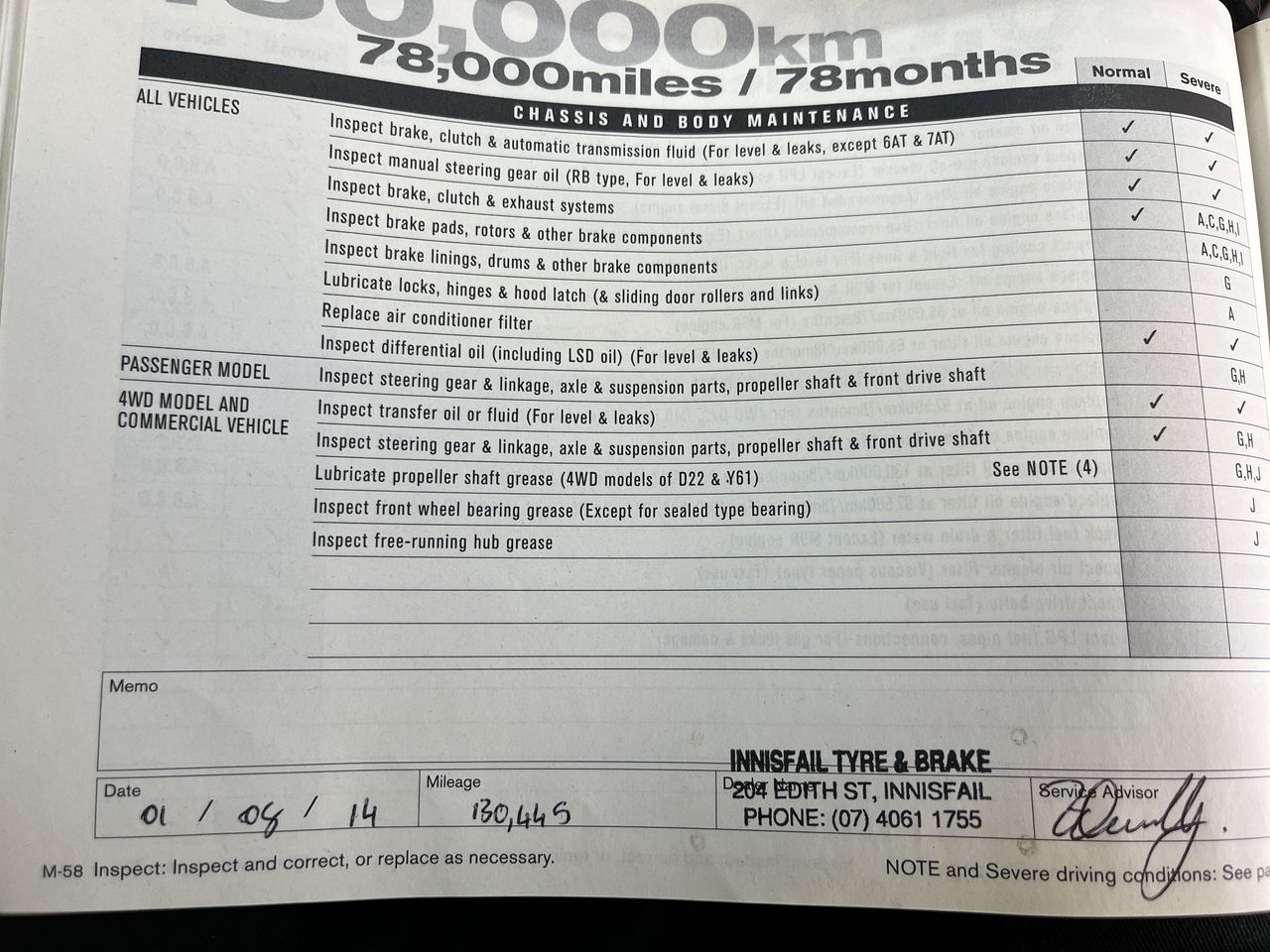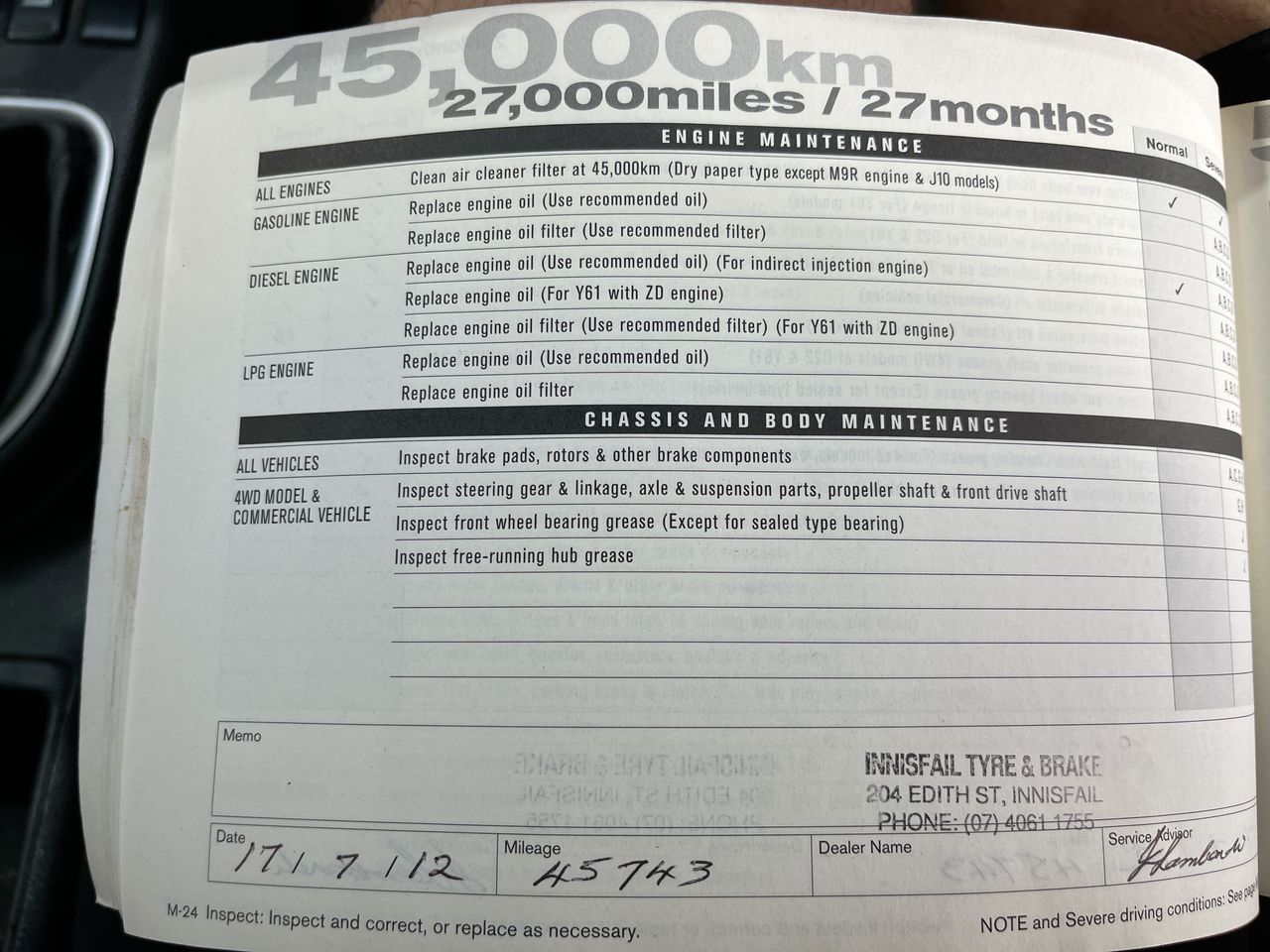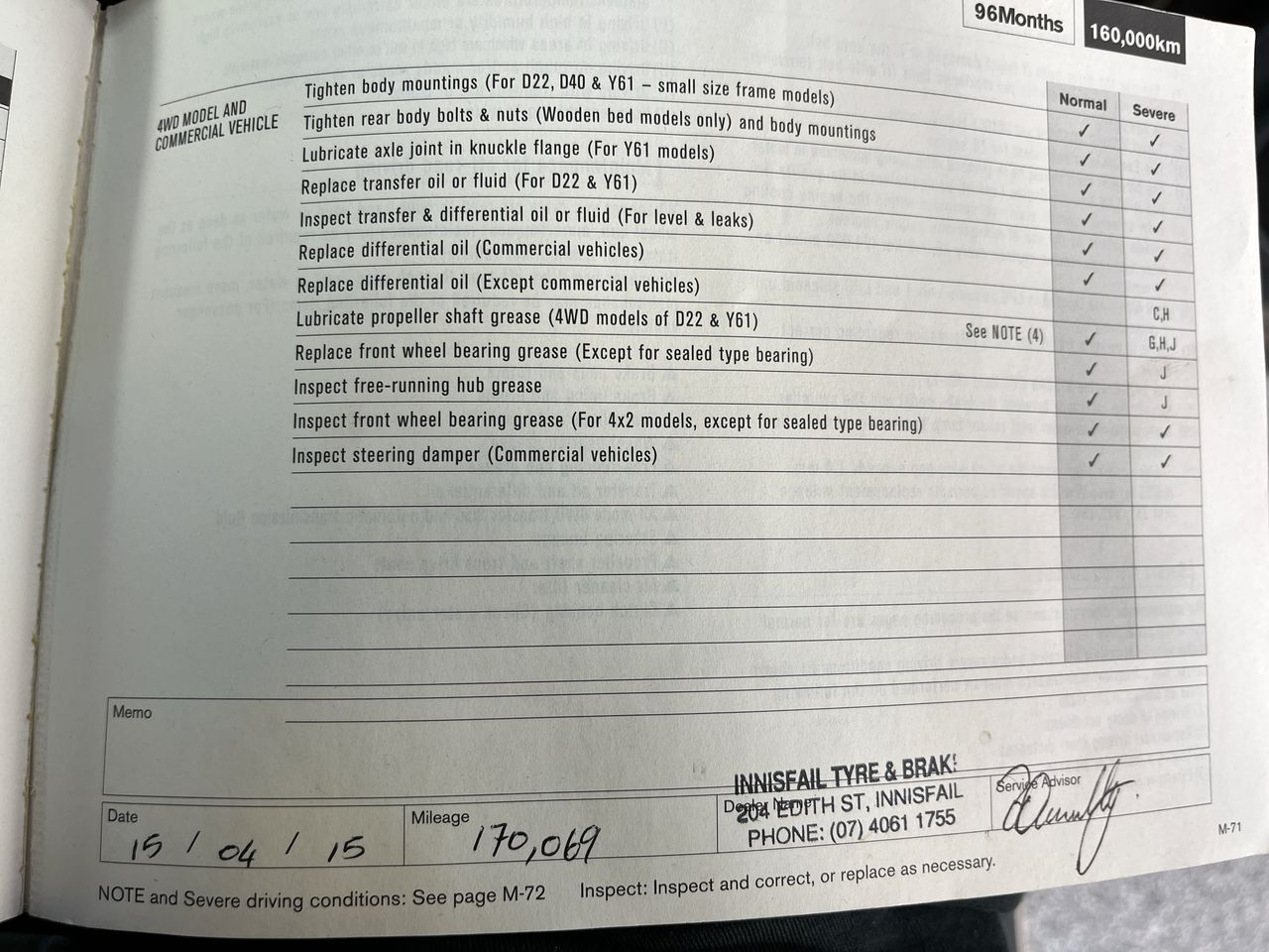 • Dents or marks on body consistent with age and kilometres.