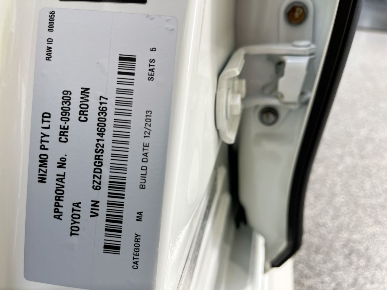 (SN:6ZZDGRS2146003617) (132934-2)