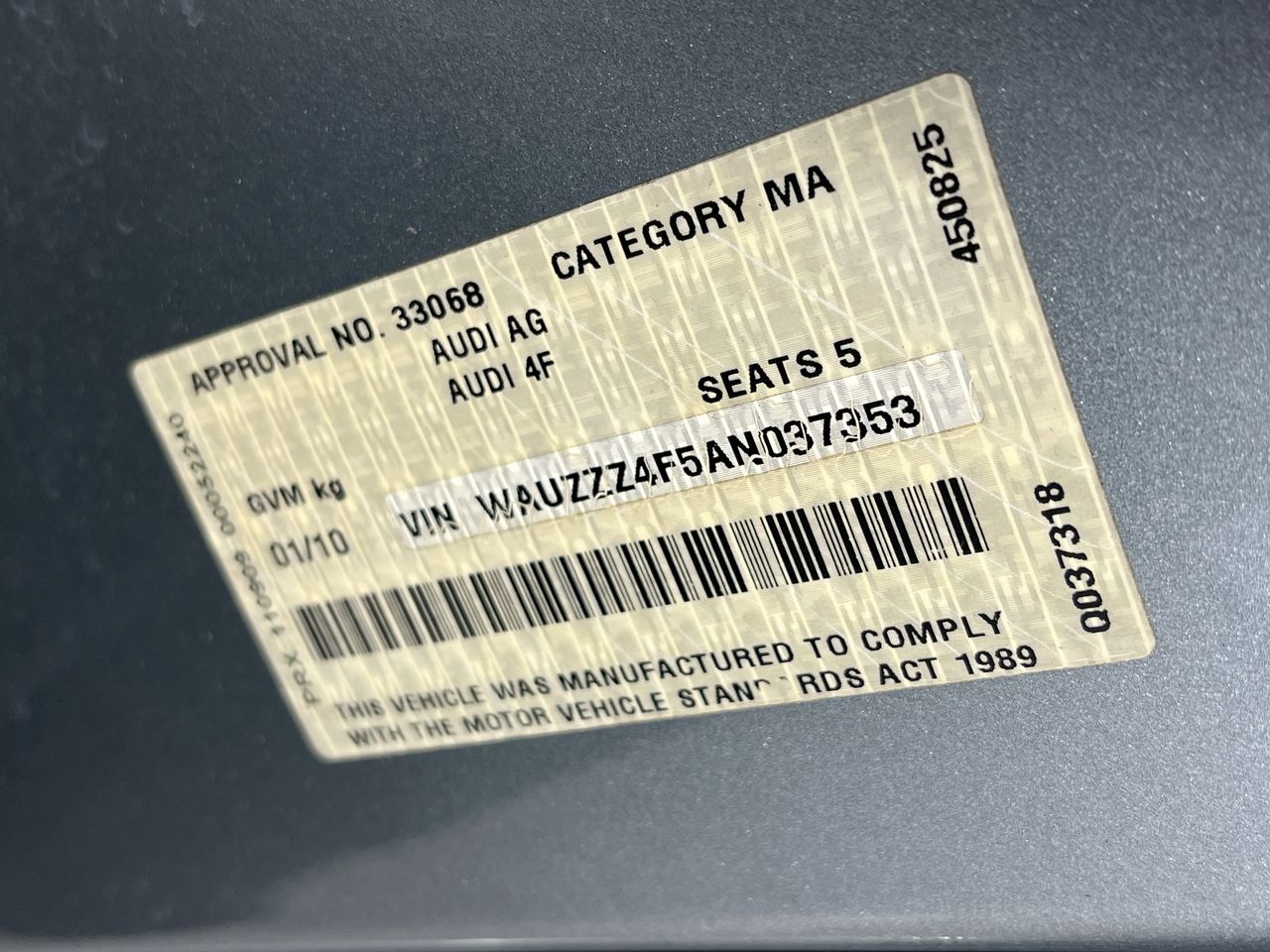 (SN:WAUZZZ4F5AN037353) (126875-2030)