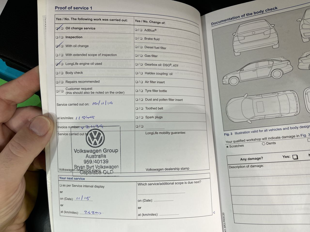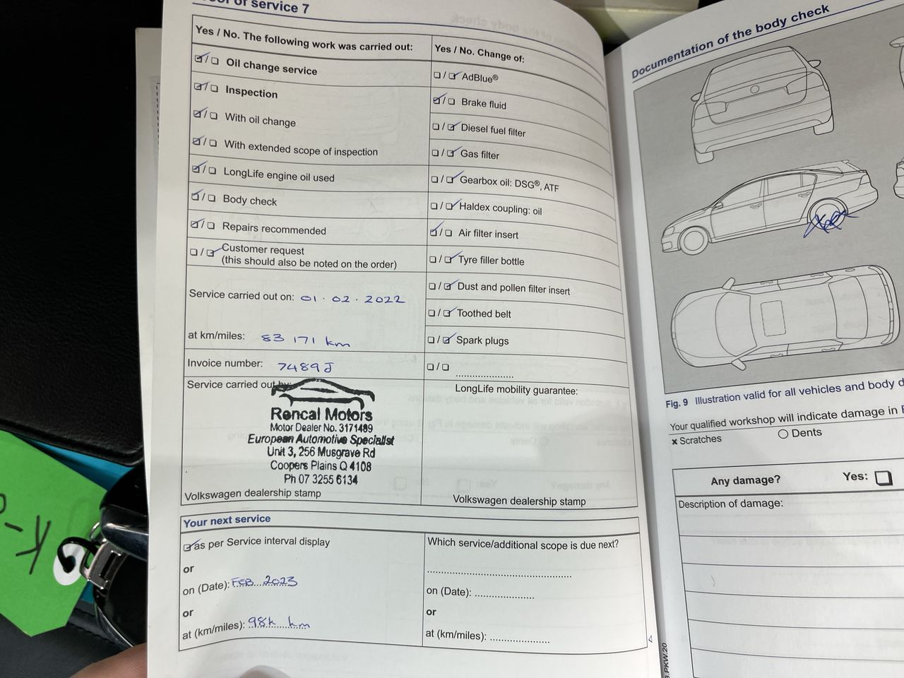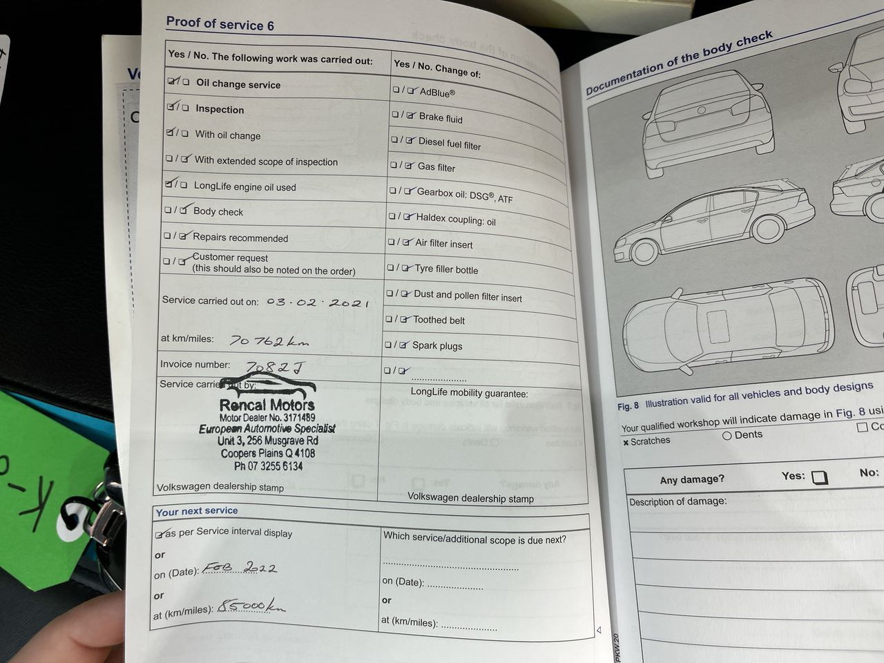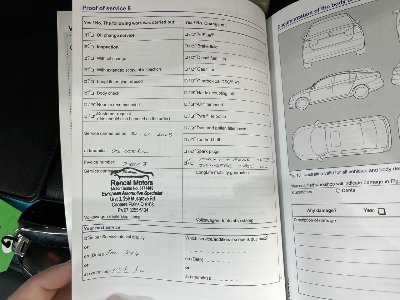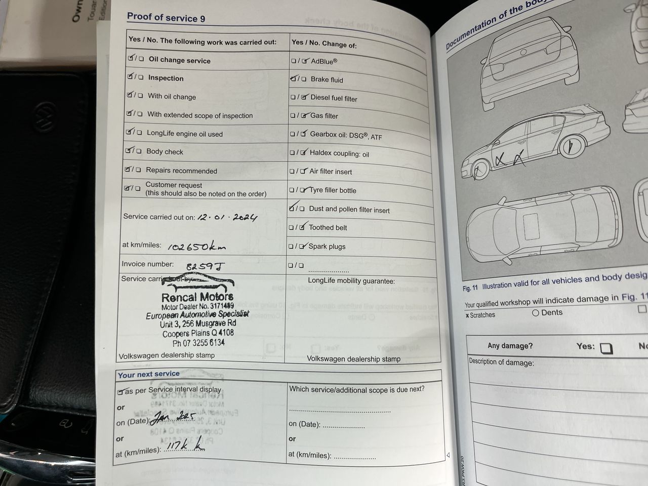 • Dents or marks on body consistent with age and kilometres.