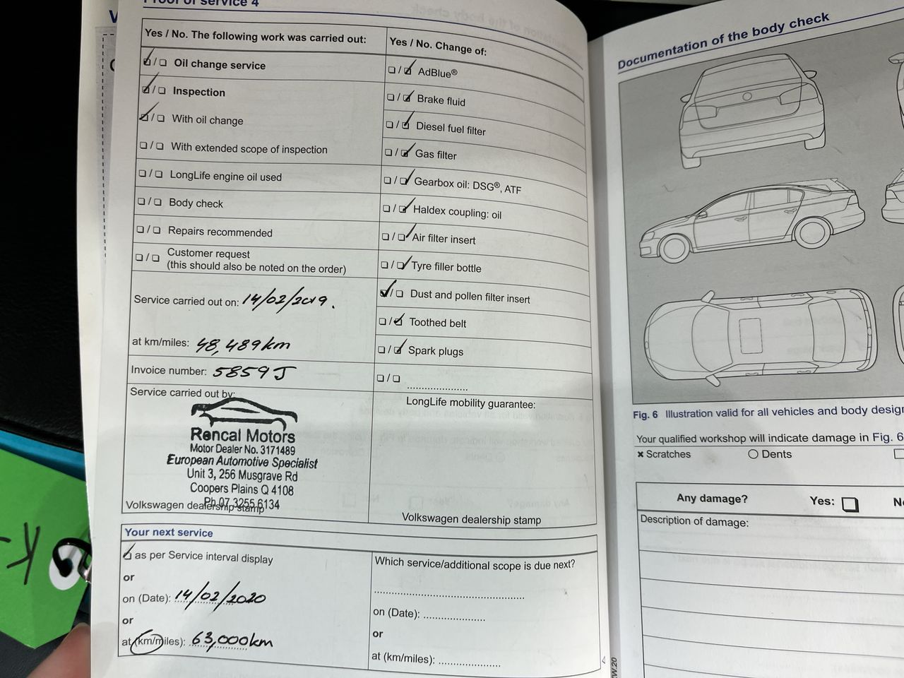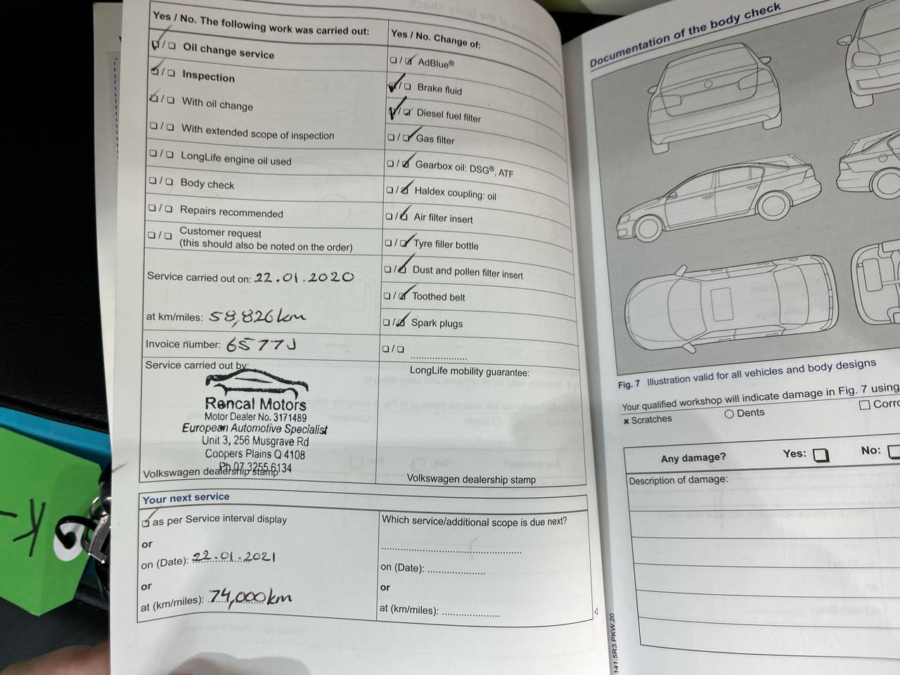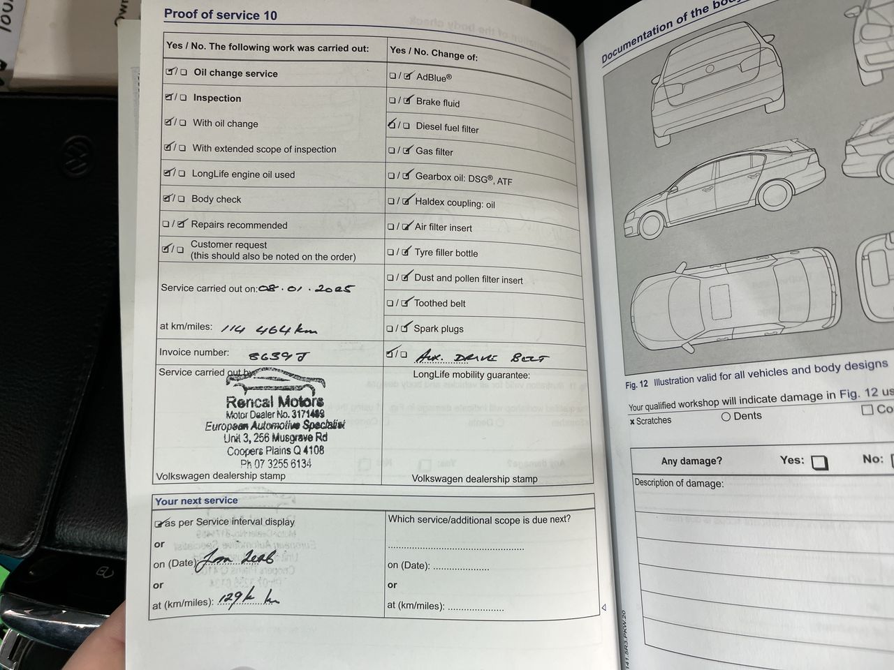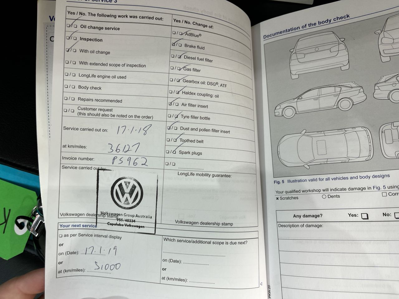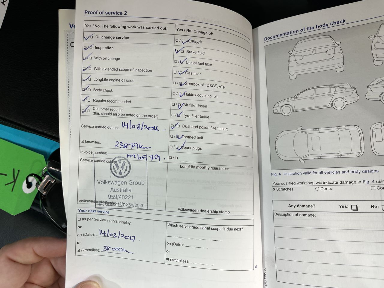 • Dents or marks on body consistent with age and kilometres.