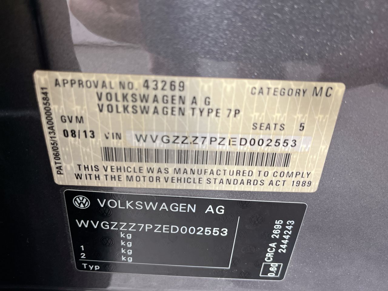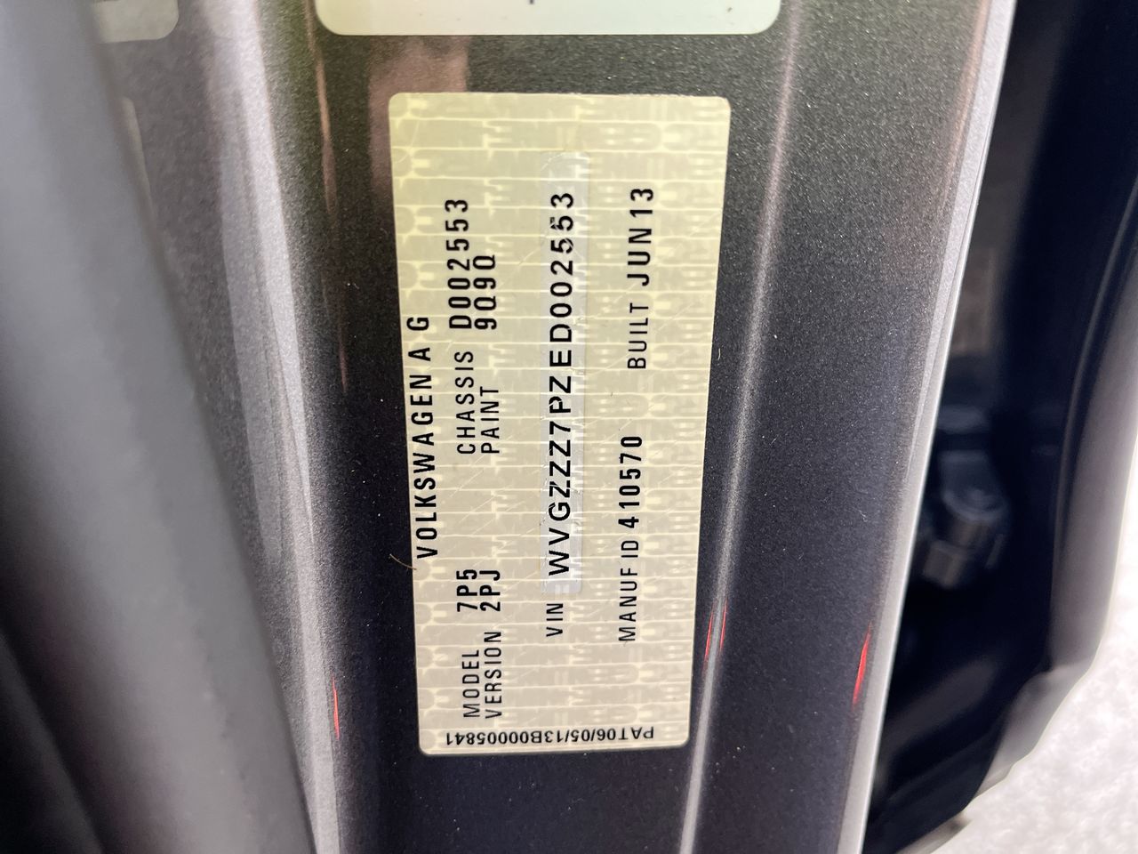 • VIN: WVGZZZ7PZED002553
