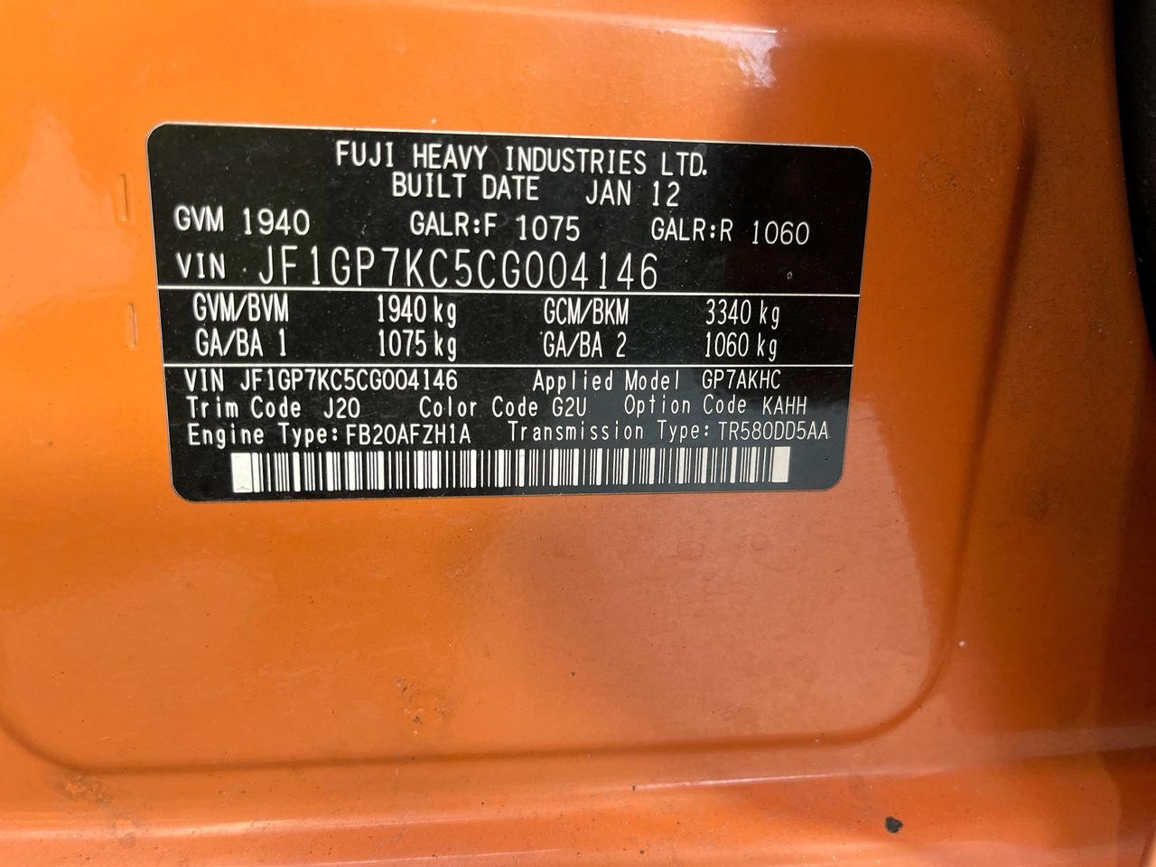(SN:JF1GP7KC5CG004146) (132005-24)