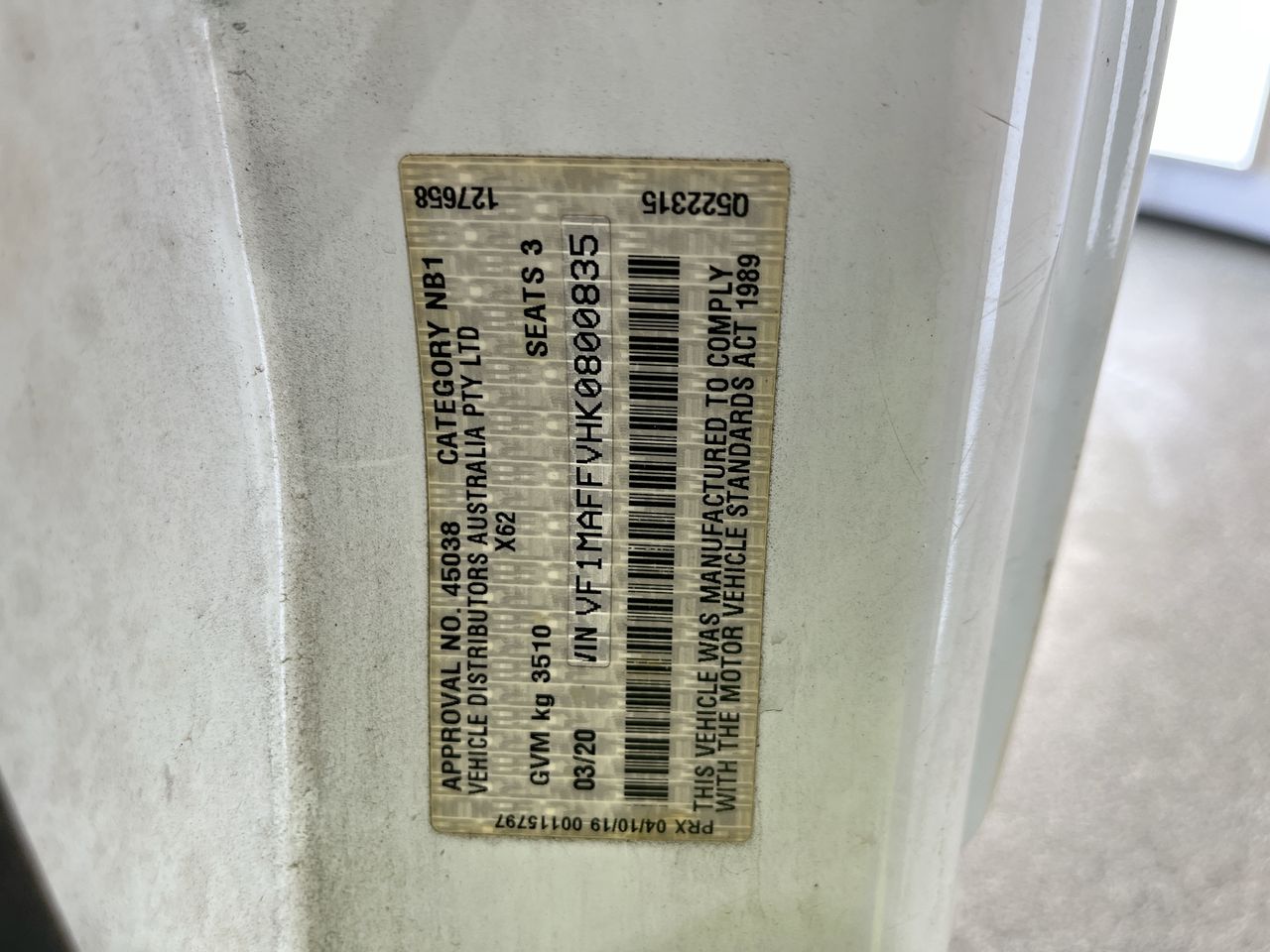 (SN:VF1MAFFVHK0800835) (132718-105)