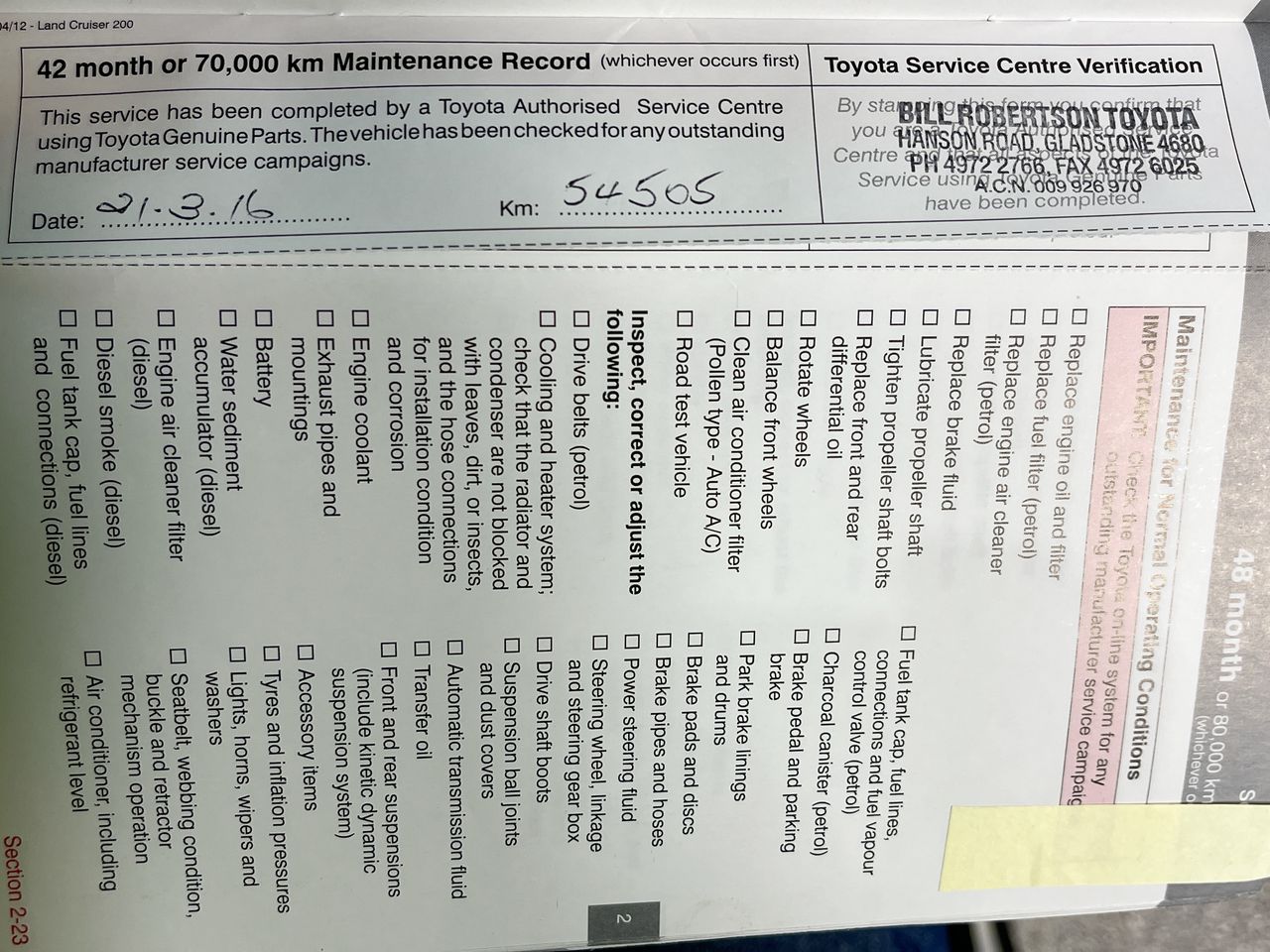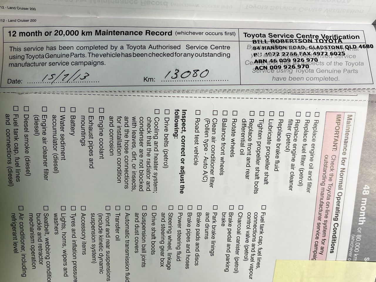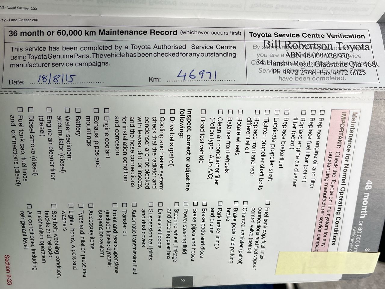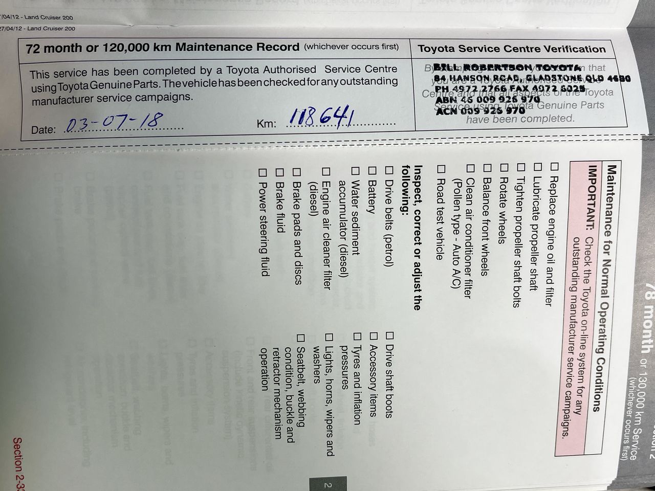 • Dents or marks on body consistent with age and kilometres.