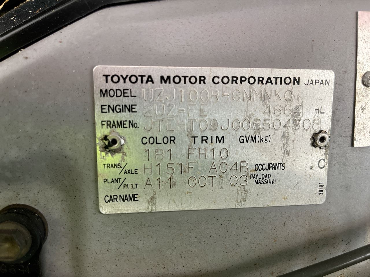 | Part of Sale | 2003 Toyota Landcruiser GXL (4x4) UZJ100R Manual Wagon | ||||||||||||||