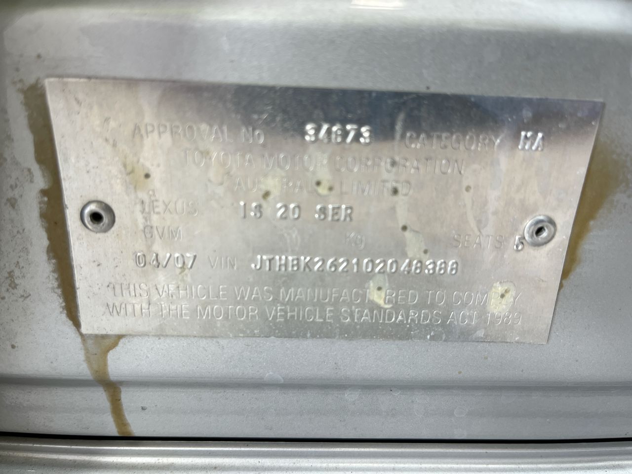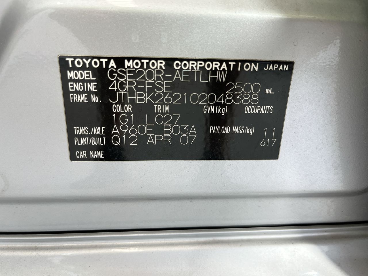 | Part of Sale | 2007 Lexus IS IS250 Prestige Automatic Sedan | ||||||||||||||
