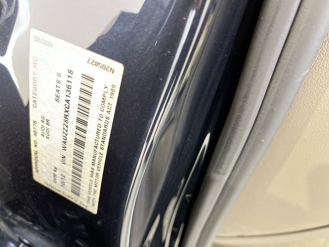 • VIN: WAUZZZ8RXCA136118