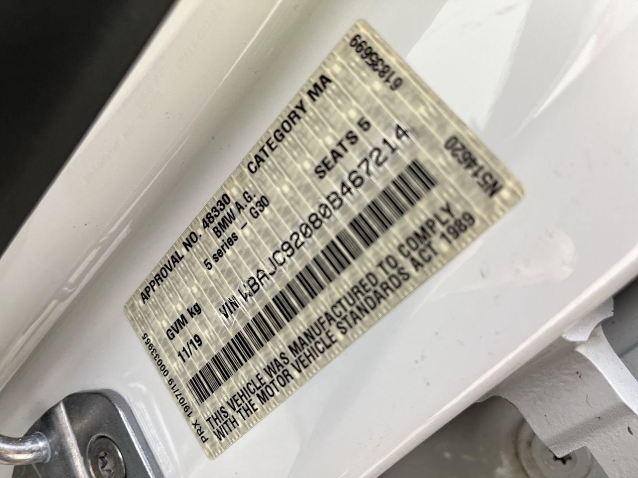 2019 BMW 5 Series 530d G30 Turbo Diesel Automatic - 8 Speed Sedan
