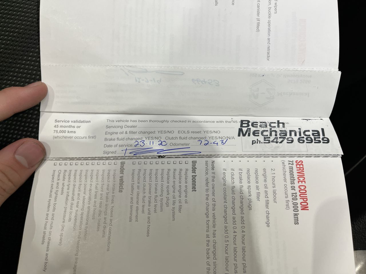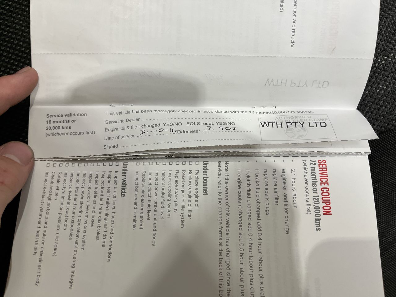 • Dents or marks on body consistent with age and kilometres.