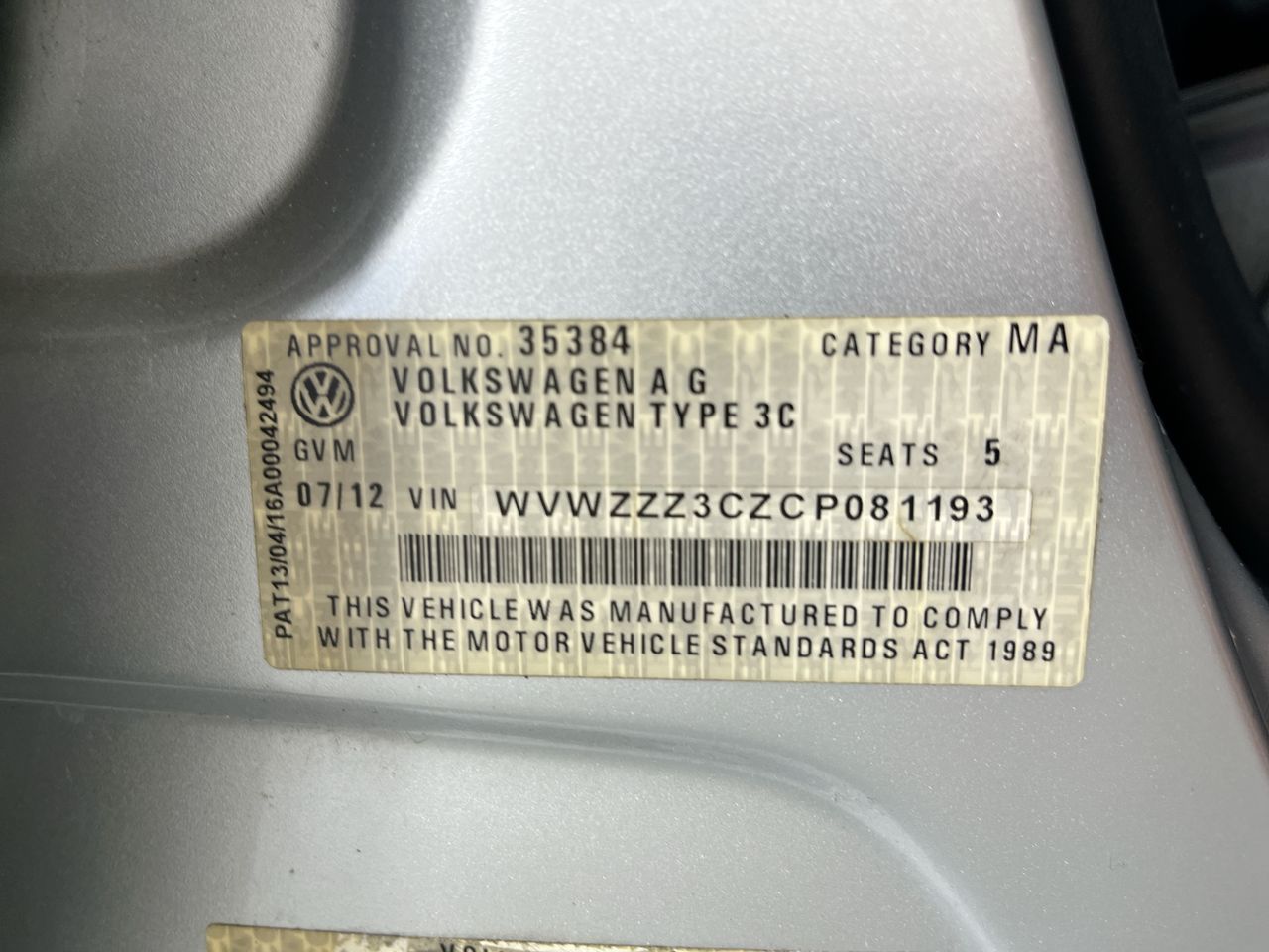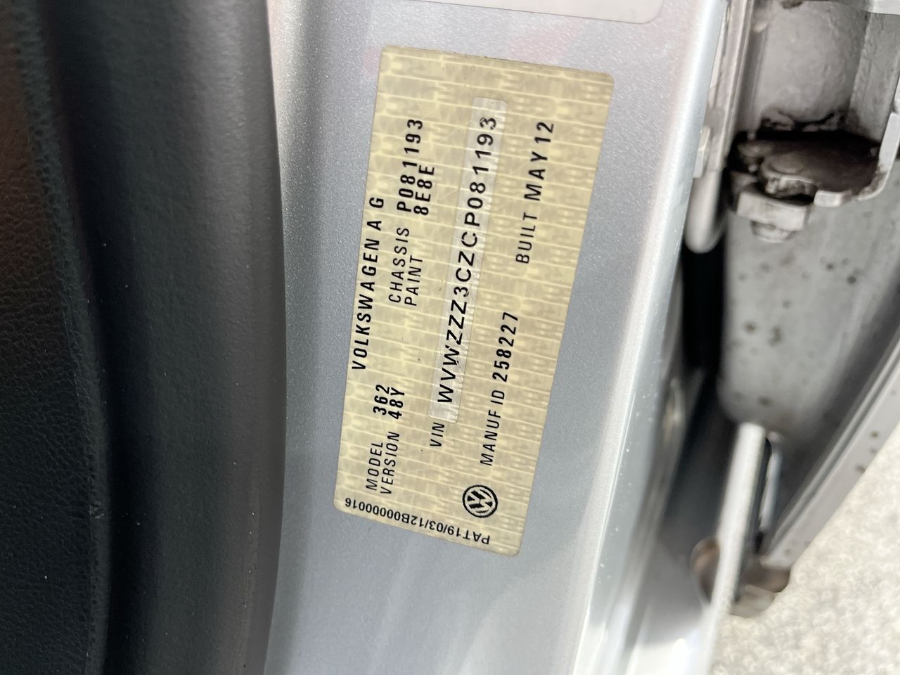 • VIN: WVWZZZ3CZCP081193