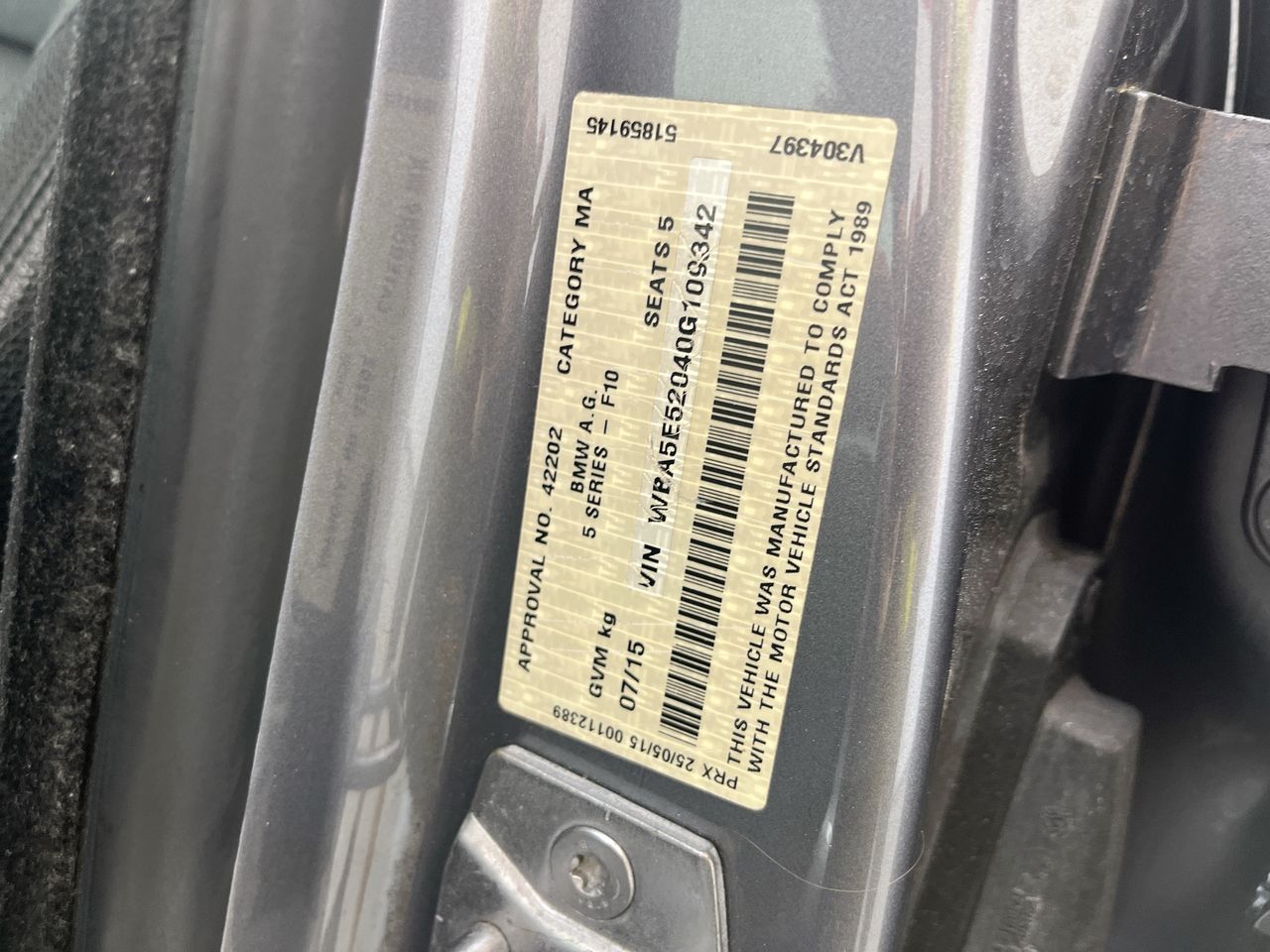 (SN:WBA5E52040G109342) (134707-7)