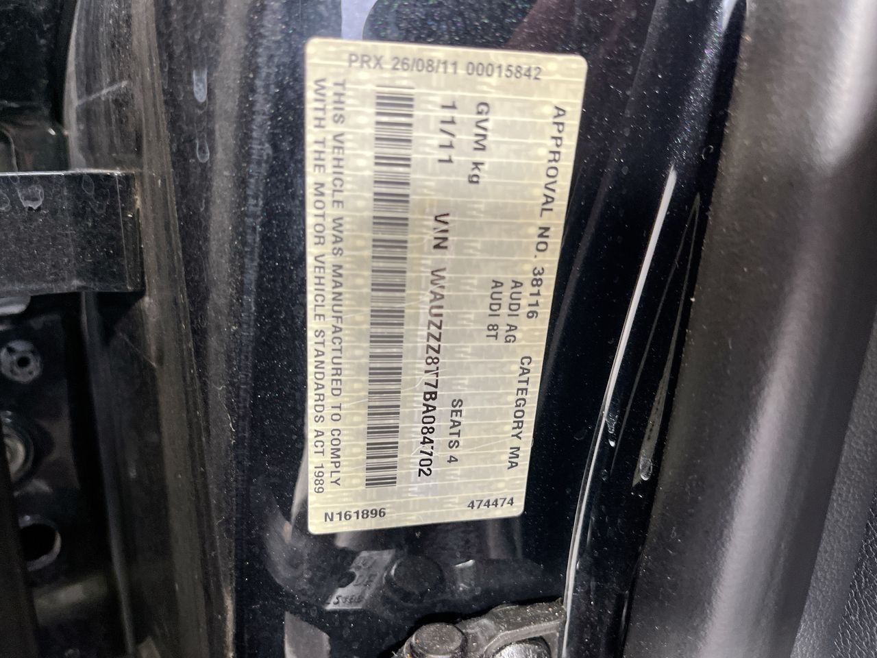 • VIN: WAUZZZ8T7BA084702
