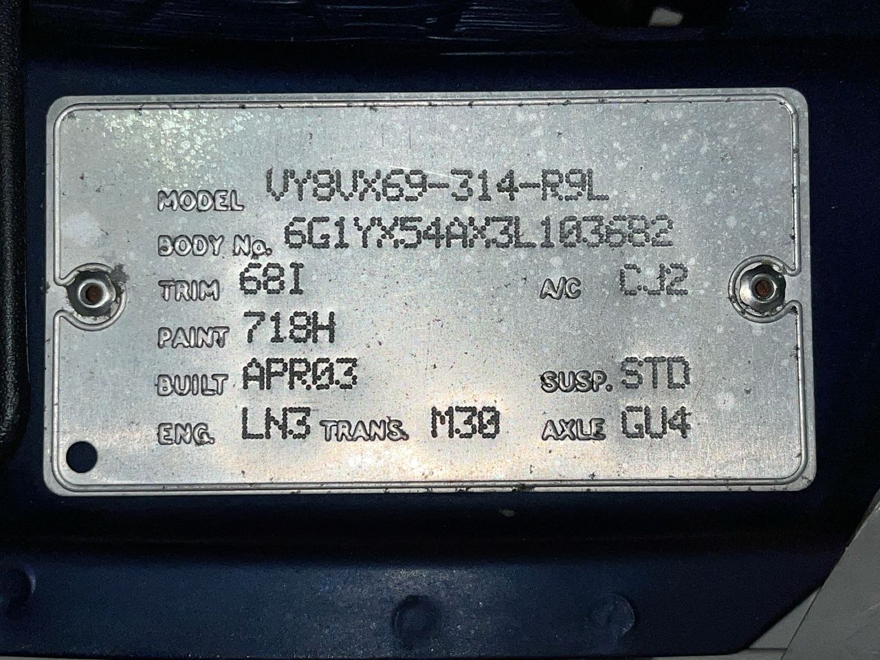 (SN:6G1YX54AX3L103682)