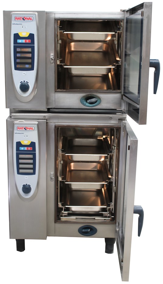 • RATIONAL ELECTRIC SELF COOKING CENTRE DOUBLE STACKED 10 TRAY / 6 TRAY COMBI OVEN