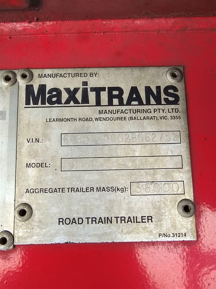 Part of Sale 2002 Freighter Maxitrans ST99A Triaxle Curtainsider Trailer