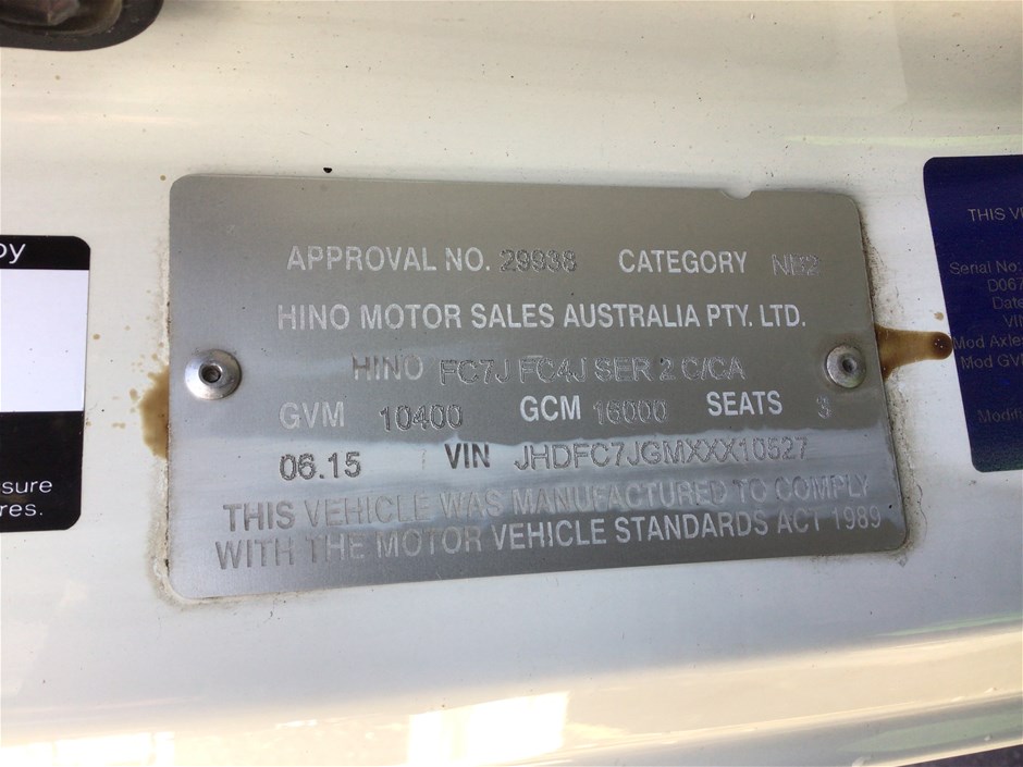 Part of Sale No Reserve 2015 Hino FC 500 4 x 2 Cab Chassis Truck