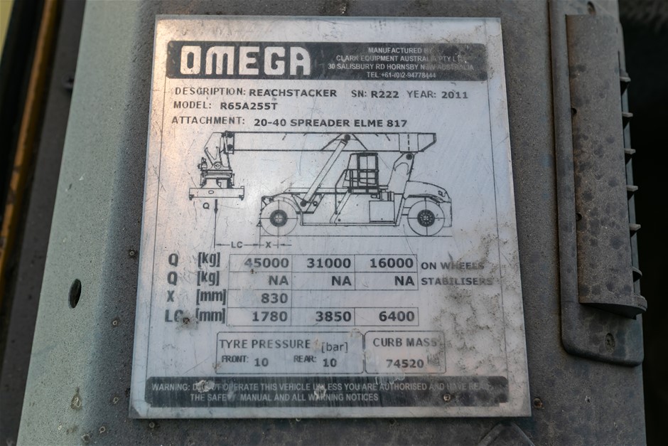 | Part of Sale | 2011 OMEGA RS65A255T Container Forklift | ||||||||||