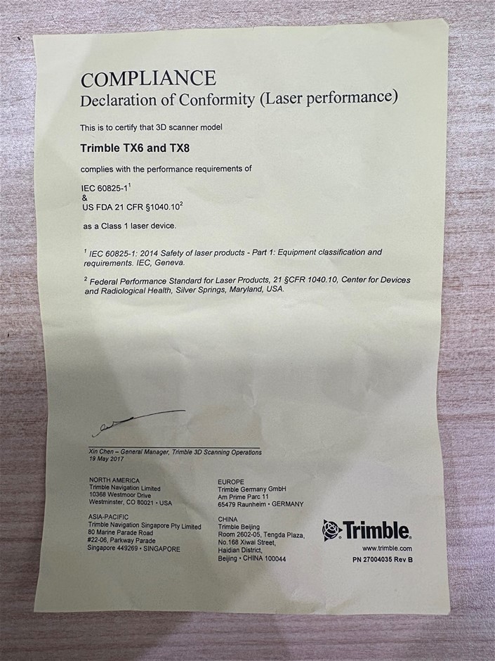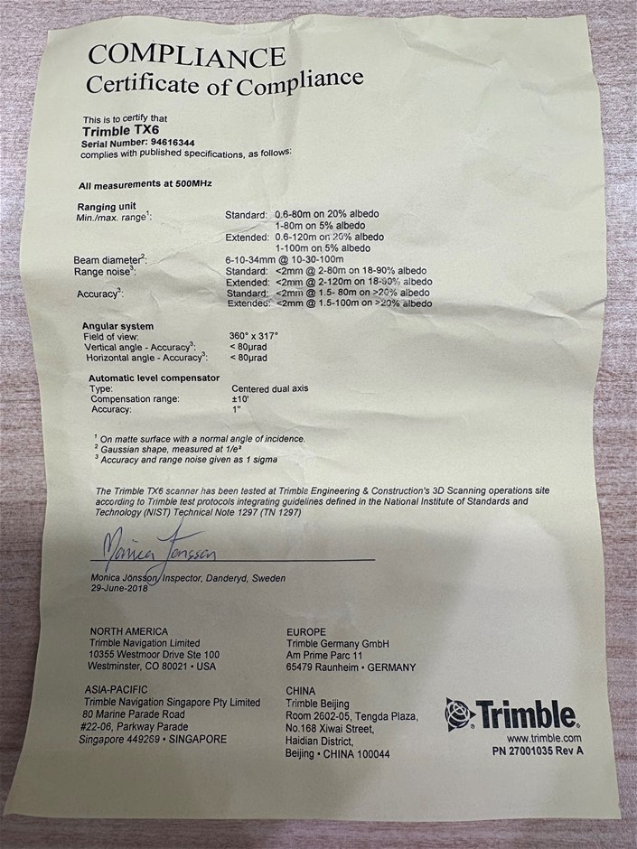 | Part of Sale | Trimble TX6 3D Laser Scanner | ||||||||||