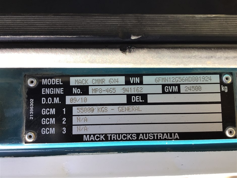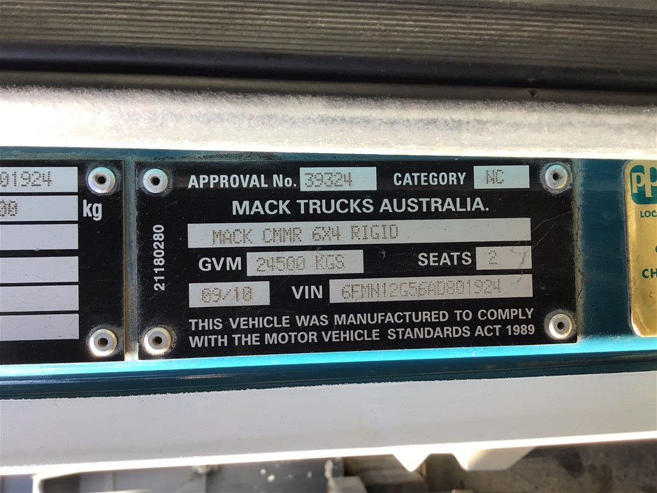 Part of Sale No Reserve 2010 Mack CMMR 6x4 Rigid Tipper Truck