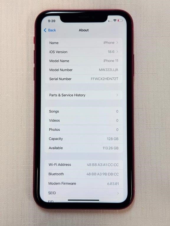 APPLE iPhone 11 128GB in Red (MWJ22LL/A)