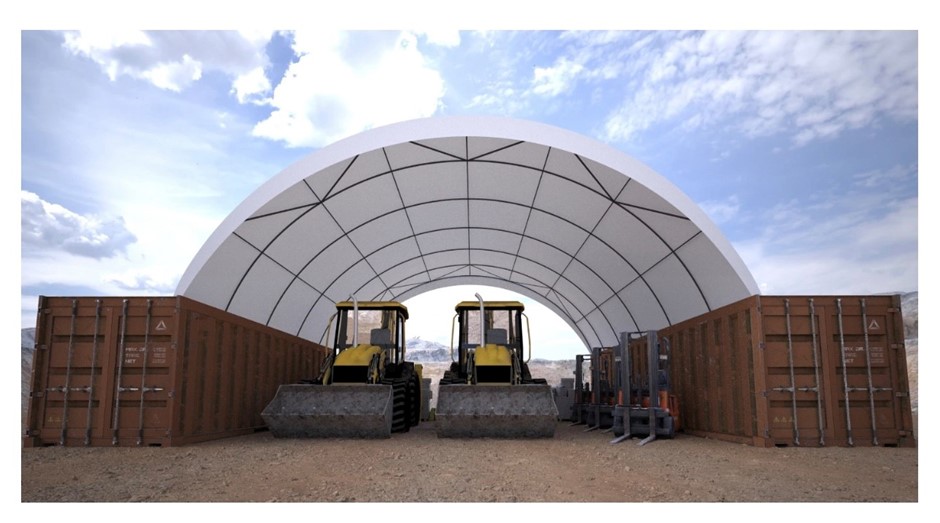 20’ SHIPPING CONTAINERS X 4, PLUS BRAND NEW 30’ x 40’ DOME SHELTER