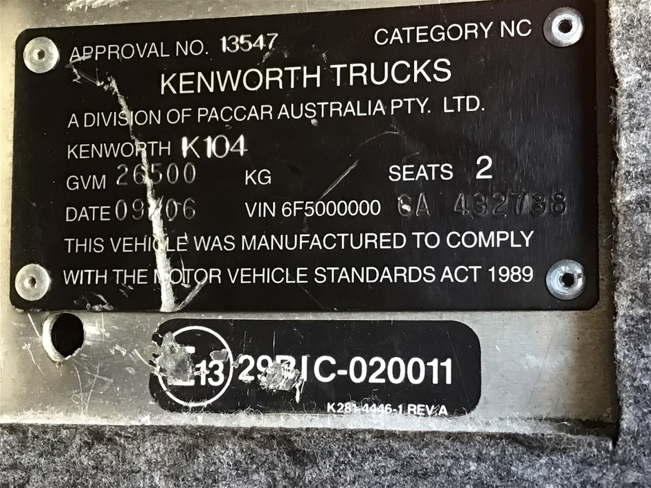 | Part of Sale | 2006 Kenworth K104 6 x 4 Prime Mover Truck | ||||||||||
