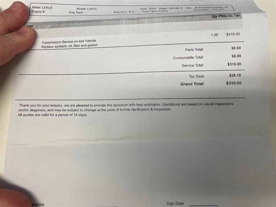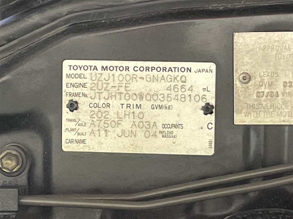 | Part of Sale | 2004 Lexus LX470 (4x4) Automatic Wagon | ||||||||||||||
