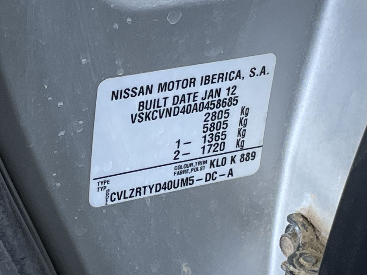 (SN:VSKCVND40A0458685) (105907-1166)
