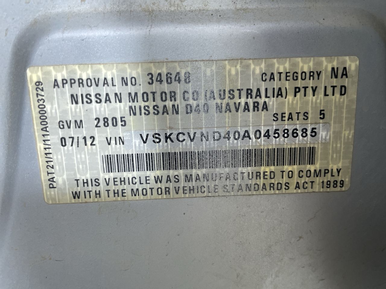 | Part of Sale | 2012 Nissan Navara 4X4 ST D40 | ||||||||||||||