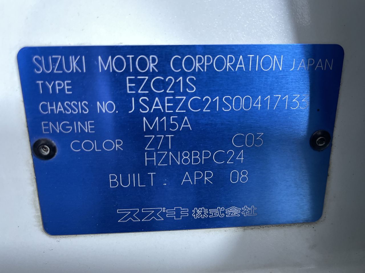• VIN: JSAEZC21S00417133