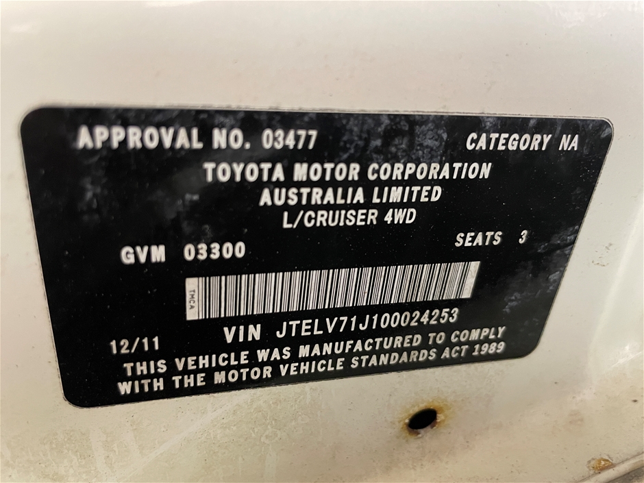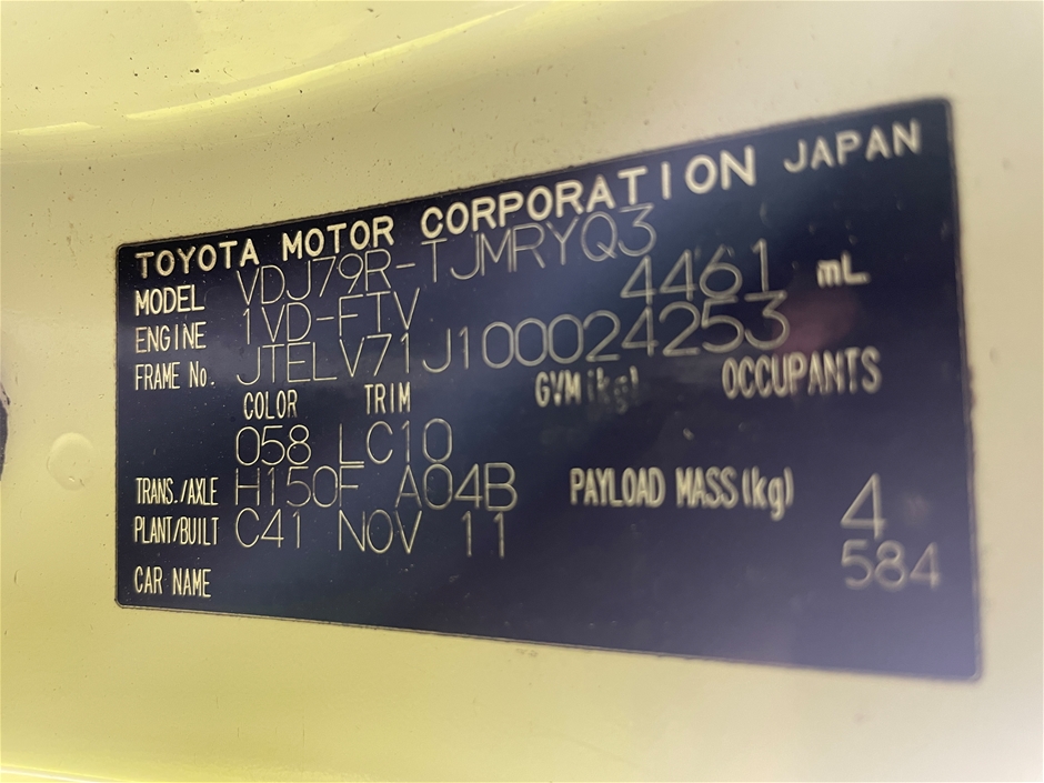Part of Sale 11/2011 Toyota Landcruiser vdj79 Workmate