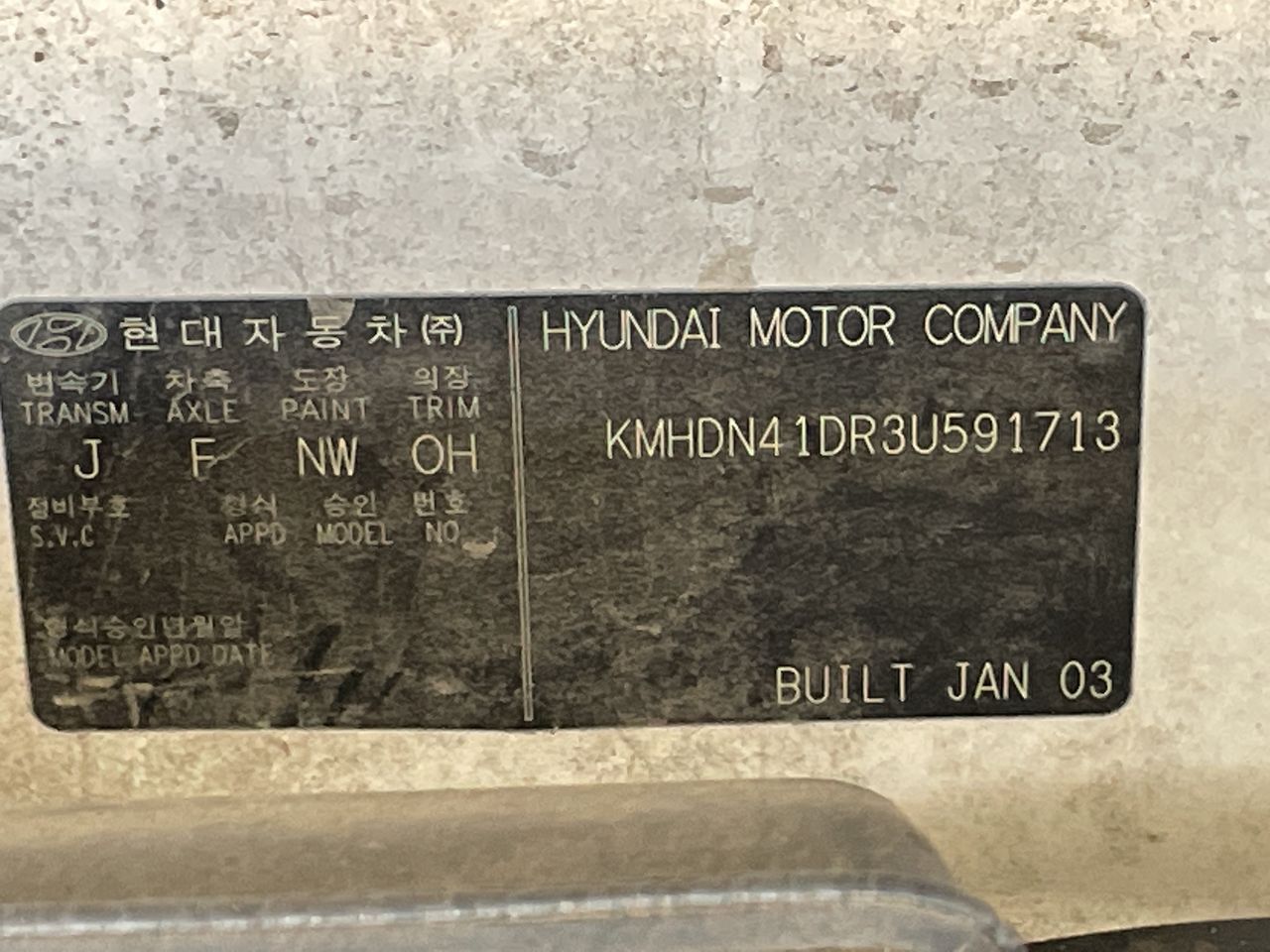 • VIN: KMHDN41DR3U591713