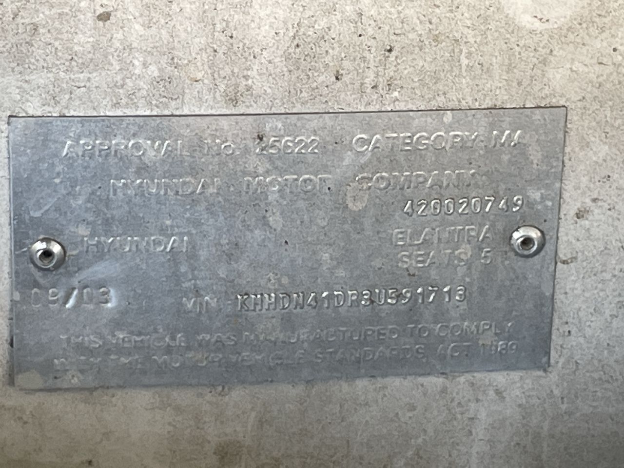 Part of Sale 2003 Hyundai Elantra GLS XD Manual Sedan