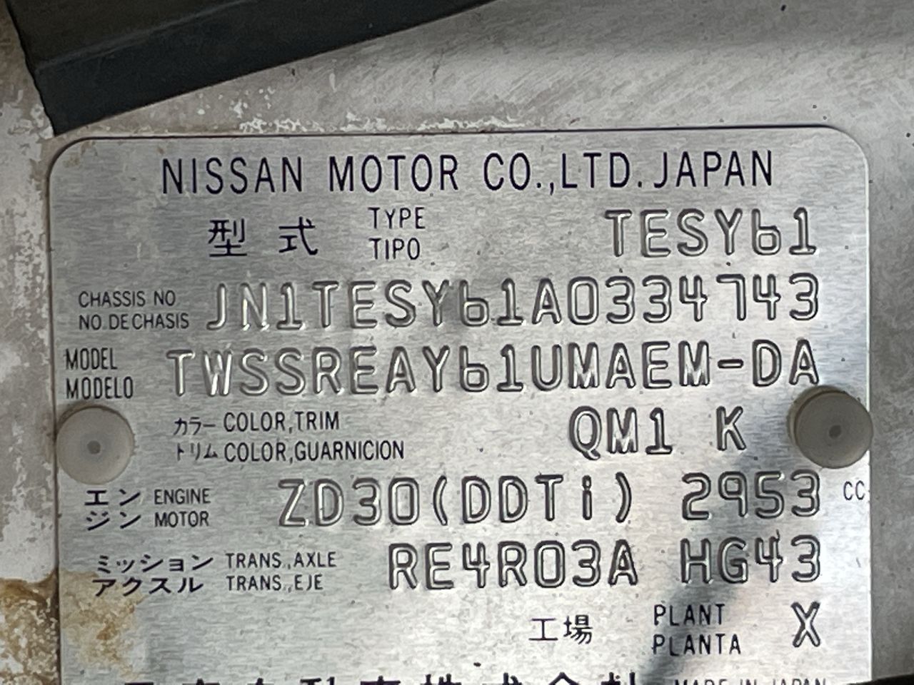 (SN:JN1TESY61A0334743) (126896-1)
