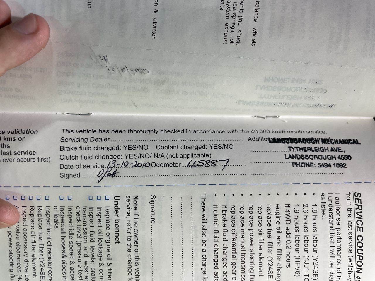 • Service History: Yes