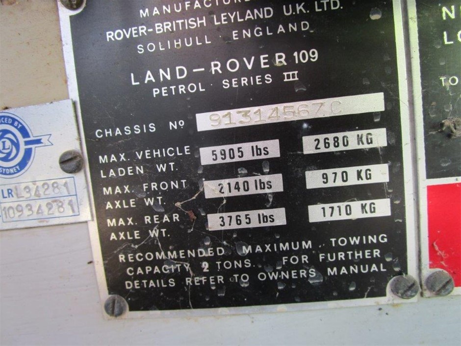 1975 Leyland Land Rover Series 3 4WD Manual Cab Chassis