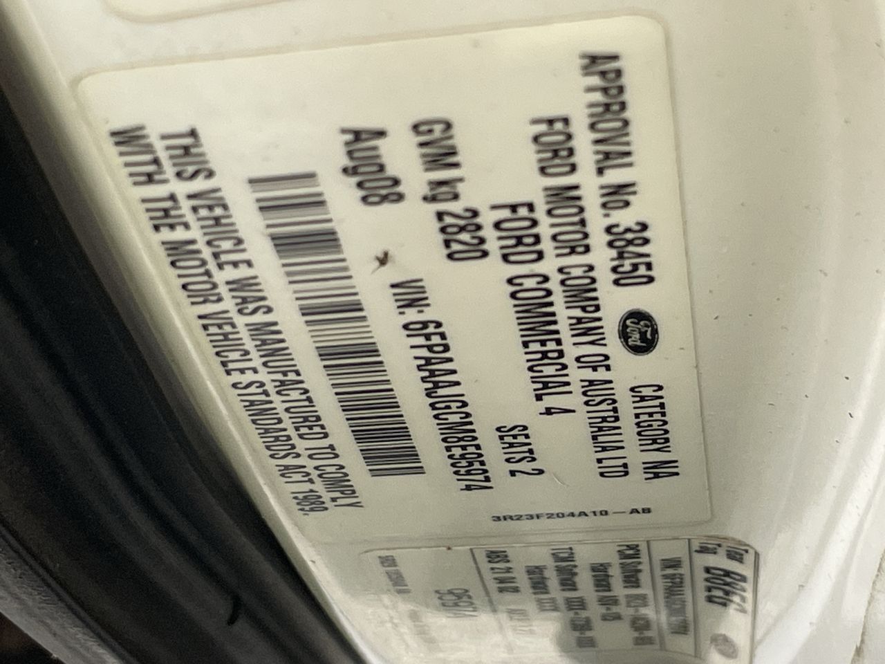 • VIN: 6FPAAAJGCM8E95974