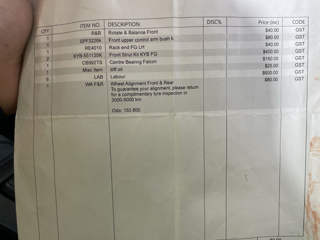 • Indicated Odometer Reading: 160969