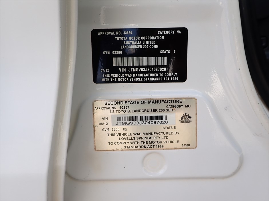 | Part of Sale | 2012 Toyota Landcruiser GX 4WD Automatic Wagon | ||||||||||||||||