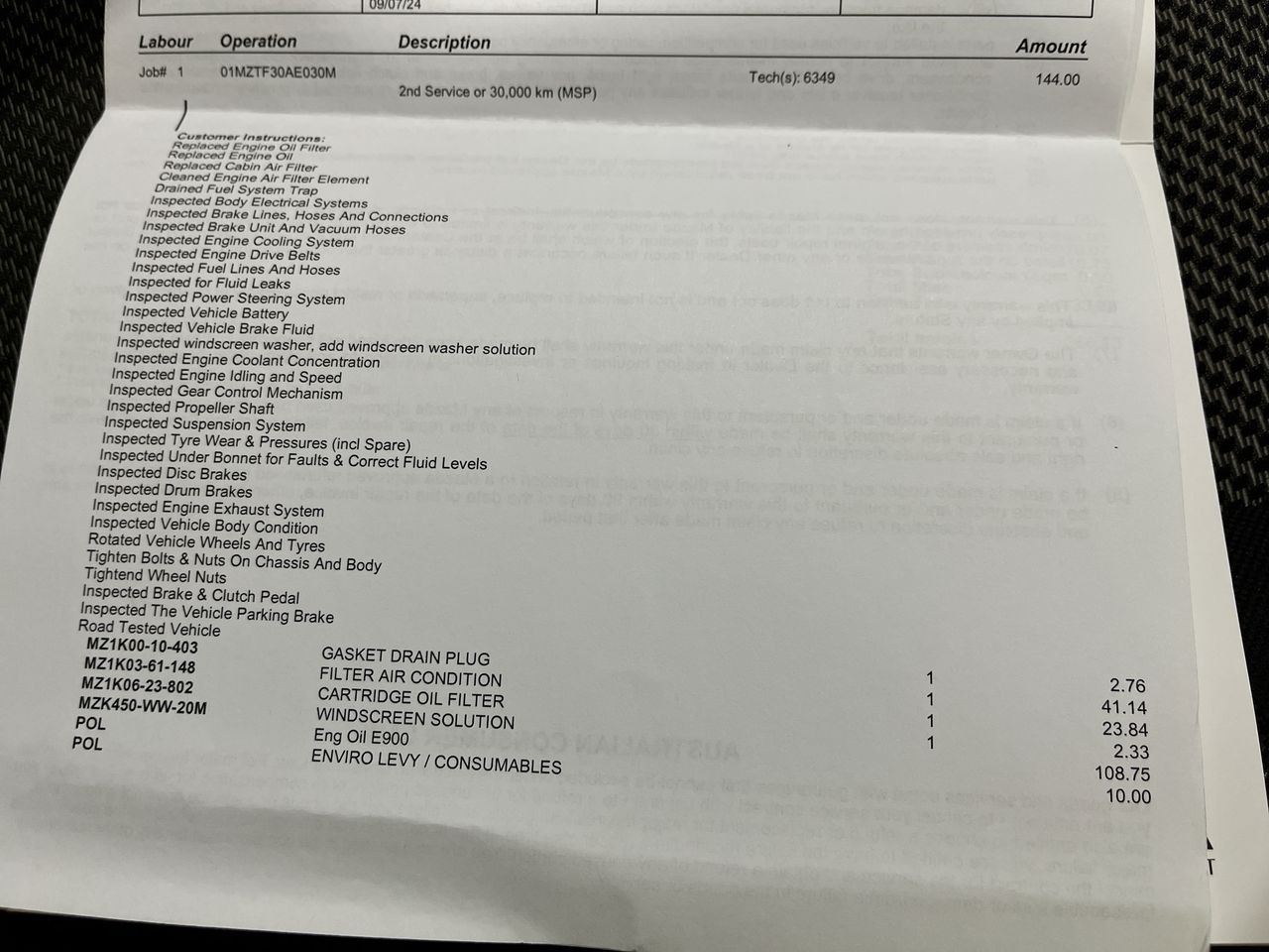 • Dents or marks on body consistent with age and kilometres.