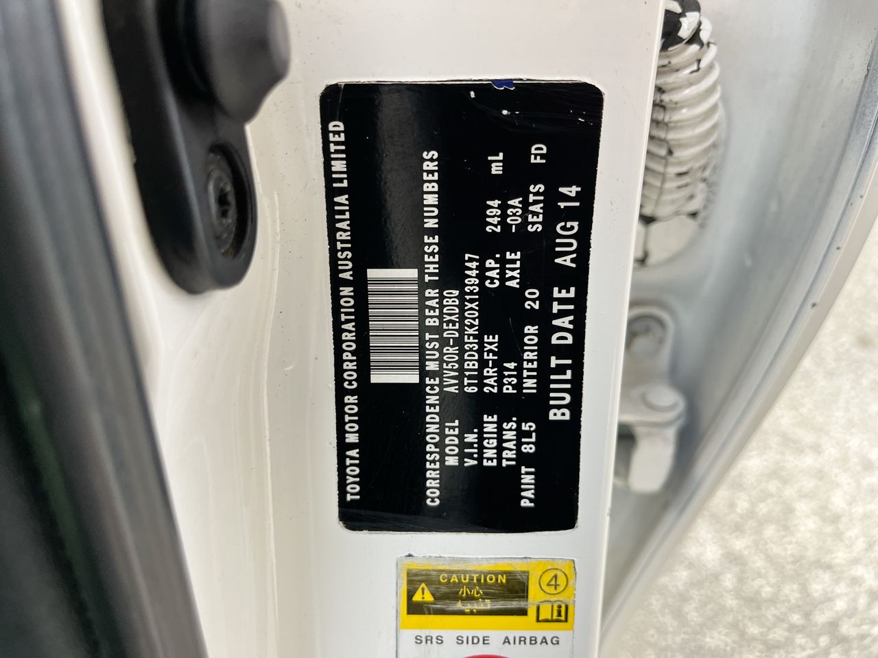 (SN:6T1BD3FK20X139447) (122628-5)