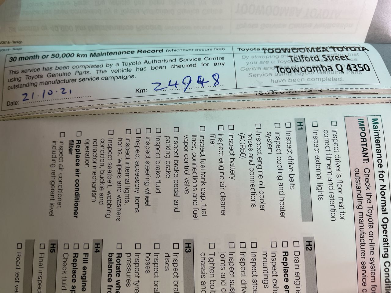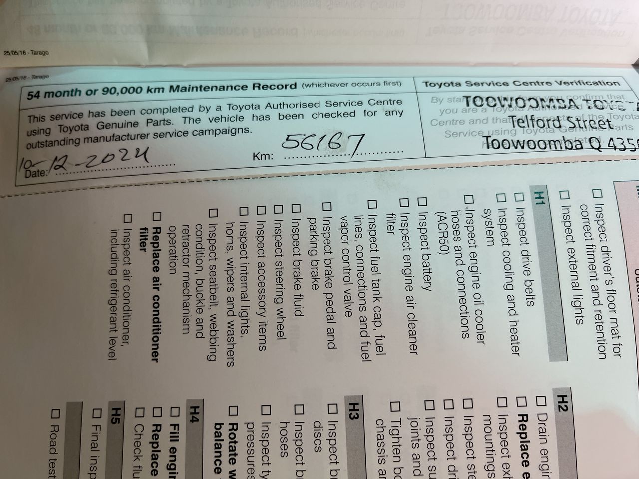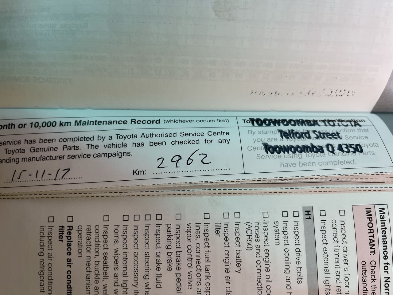 • Dents or marks on body consistent with age and kilometres.